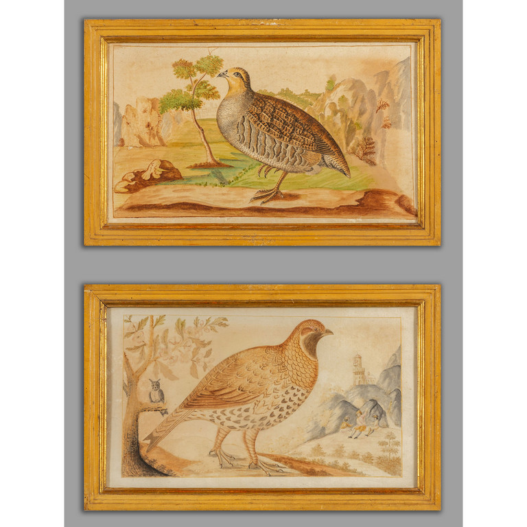 Pernici coppia di tempere su carta intelata sec.XVIII
