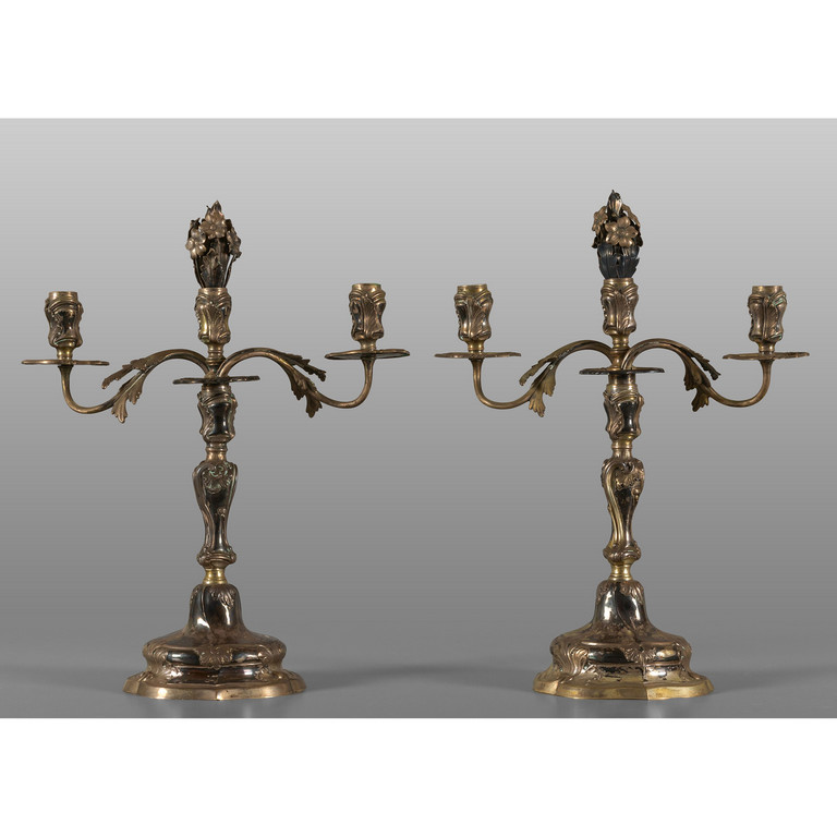 Coppia di doppieri in stile Luigi XV in argento finemente bacellato punzone dell'argentiere Codevilla Genova