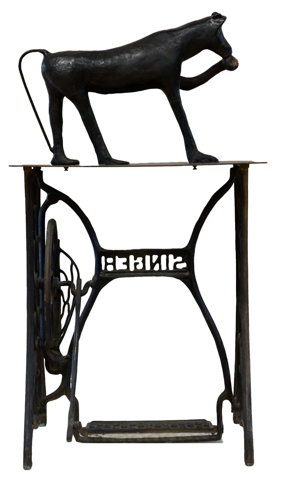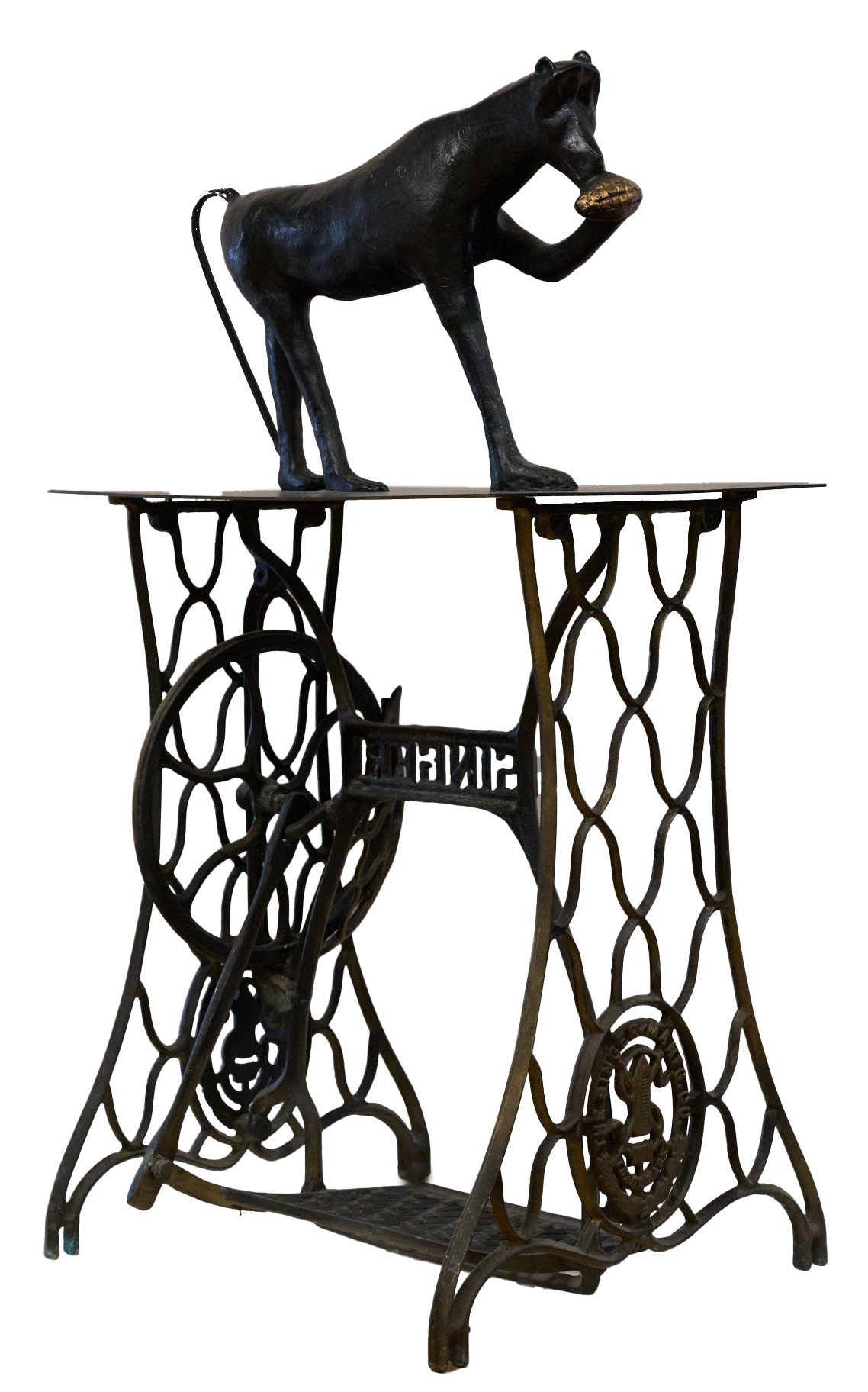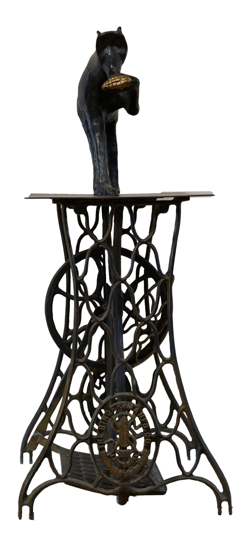 Scultura in bronzo con patina nera ed oro cm. 110x59,5x46,5