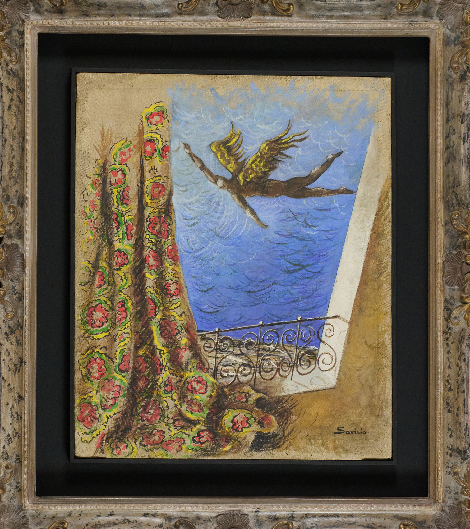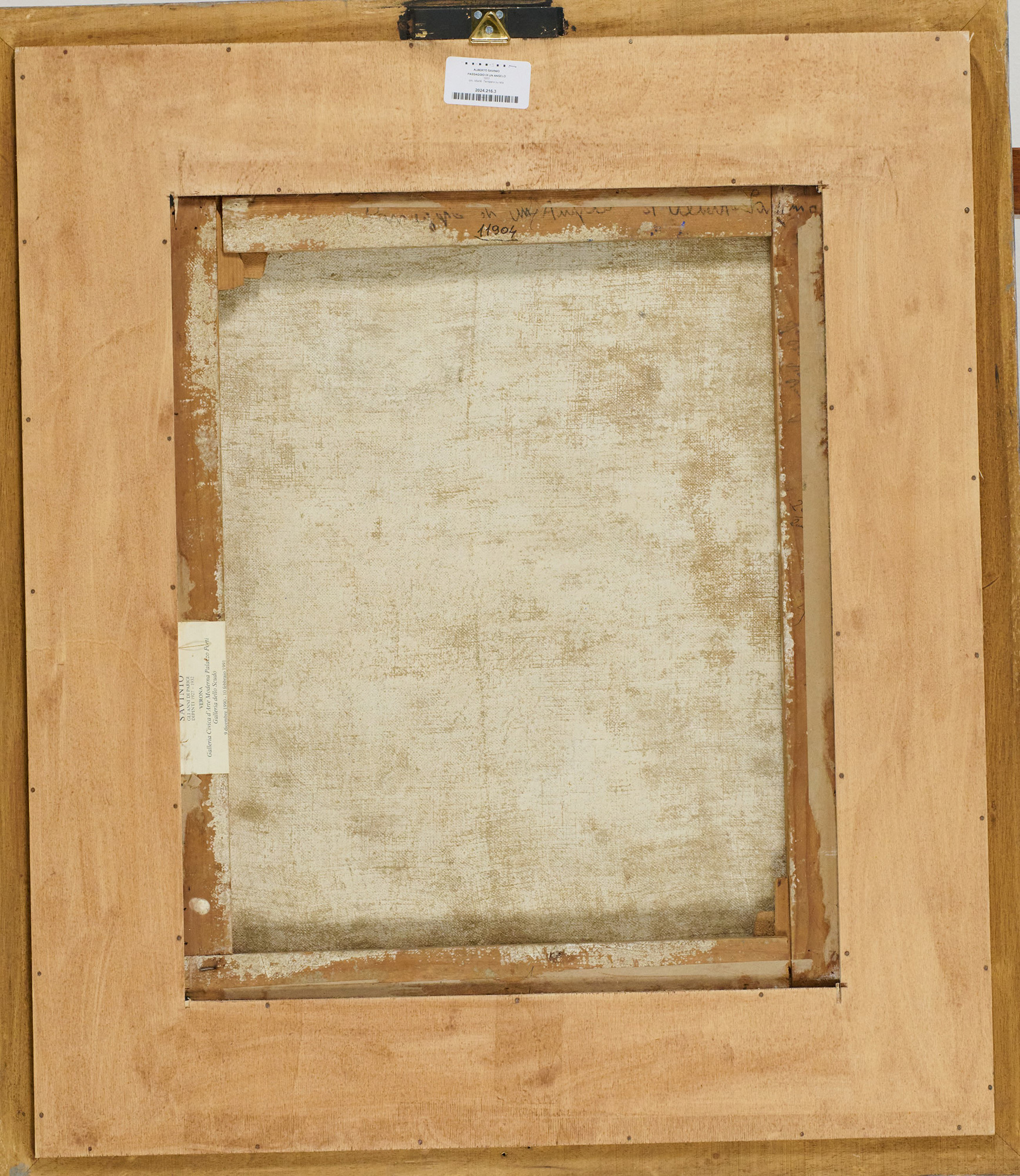 Sul verso: etichetta "Savinio, Gli anni di Parigi - dipinti dal 1927 al 1932", Palazzo Forti, Verona, poi Galleria dello Scudo, Verona, 9 dicembre 1990 - 10 febbraio 1991.