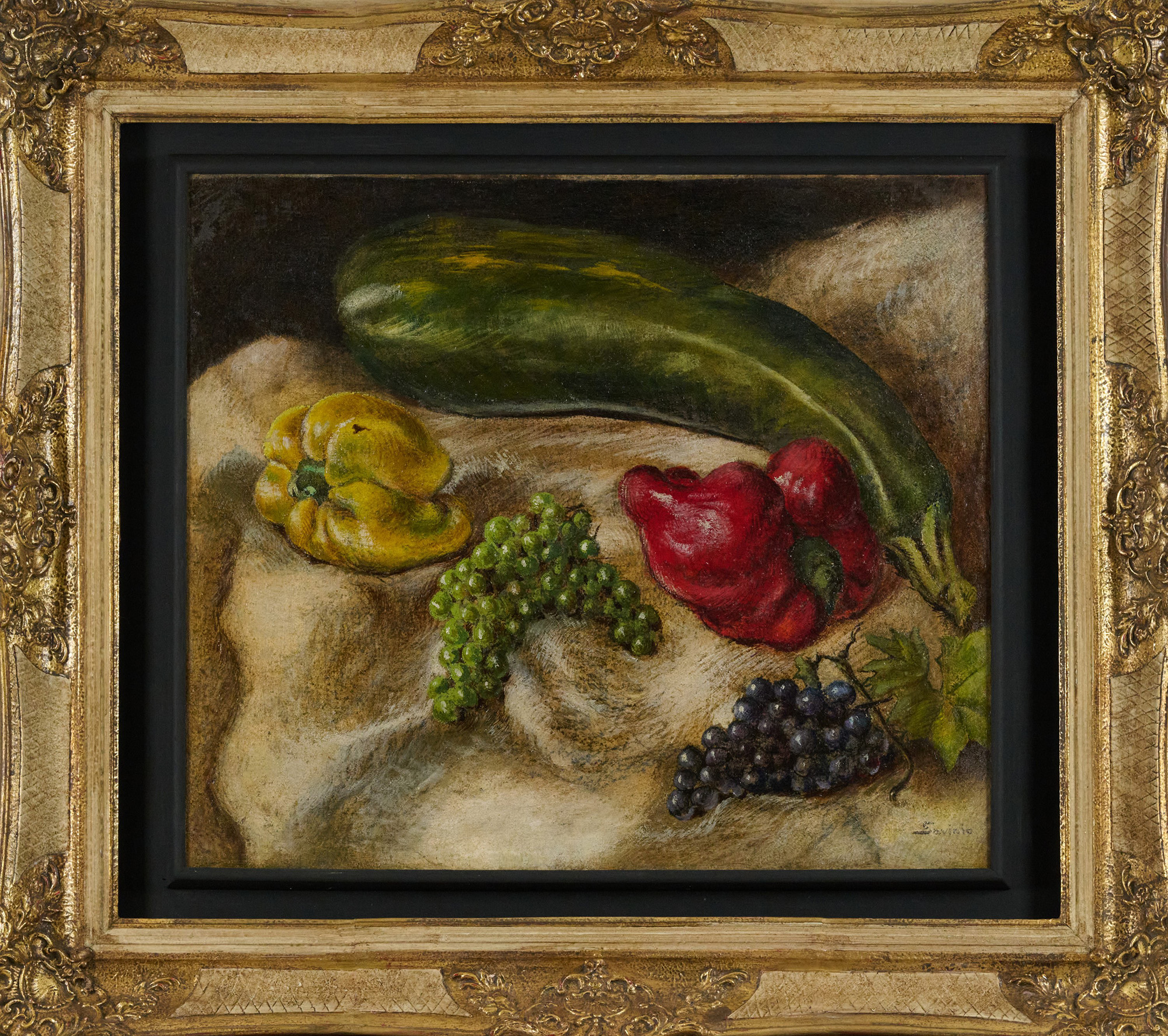 "Savinio", a cura di M. Fagiolo dell'Arco, Milano, 1989, p. 178, n°. 85 (illustrato, con titolo 'Natura morta [uva, ortaggi], tecnica e data errate)