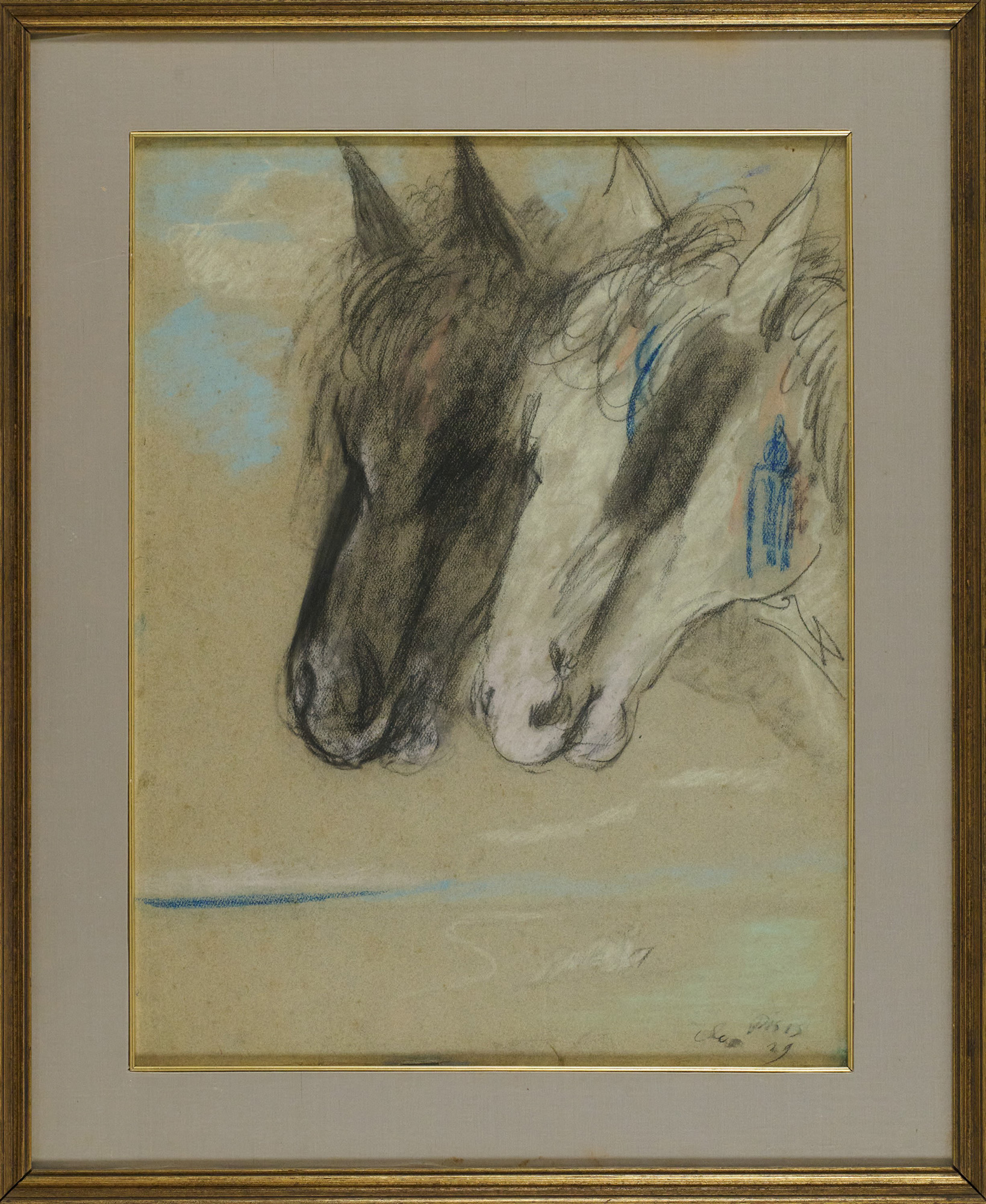 Carboncino e pastelli su carta applicata su cartone. cm. 61x47
