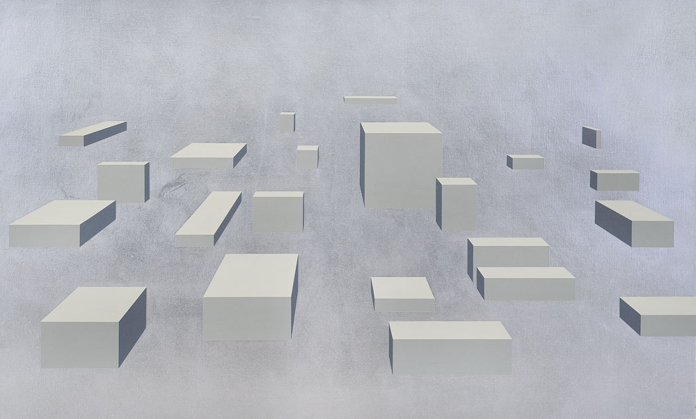 tecnica mista e foglia d'argento su tela cm. 60x100, firma e anno al retro, dichiarazione d'autenticità dell'artista con foto allegata, opera priva di cornice.