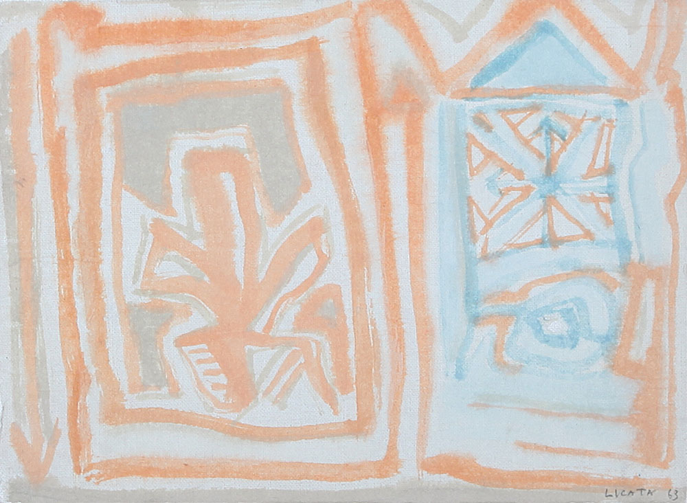 tempera su carta intelata cm. 23x31, firma e anno in basso a destra, dichiarazione d'autenticità dell'artista e Archivio delle Opere di Riccardo Licata a cura della Galleria Dante Vecchiato (PD) su foto.
