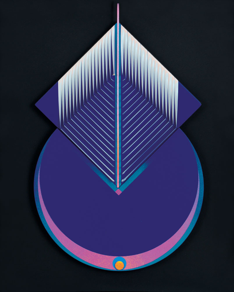 tecnica mista e assemblaggio di PVC e legni cm 45x28, su tavola cm. 50x40, firma, titolo, anno e timbro dell'Archivio Alberto Biasi n° POL 188 al retro, dichiarazione d'autenticità e archivio dell'artista su foto.