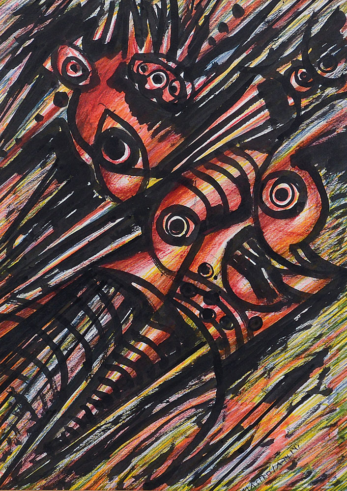 inchiostro su cartone cm. 70x50, firma in basso a destra, autentica dell'artista su foto, certificato d'autenticità della Galleria Verso l'Arte (Roma) allegato.