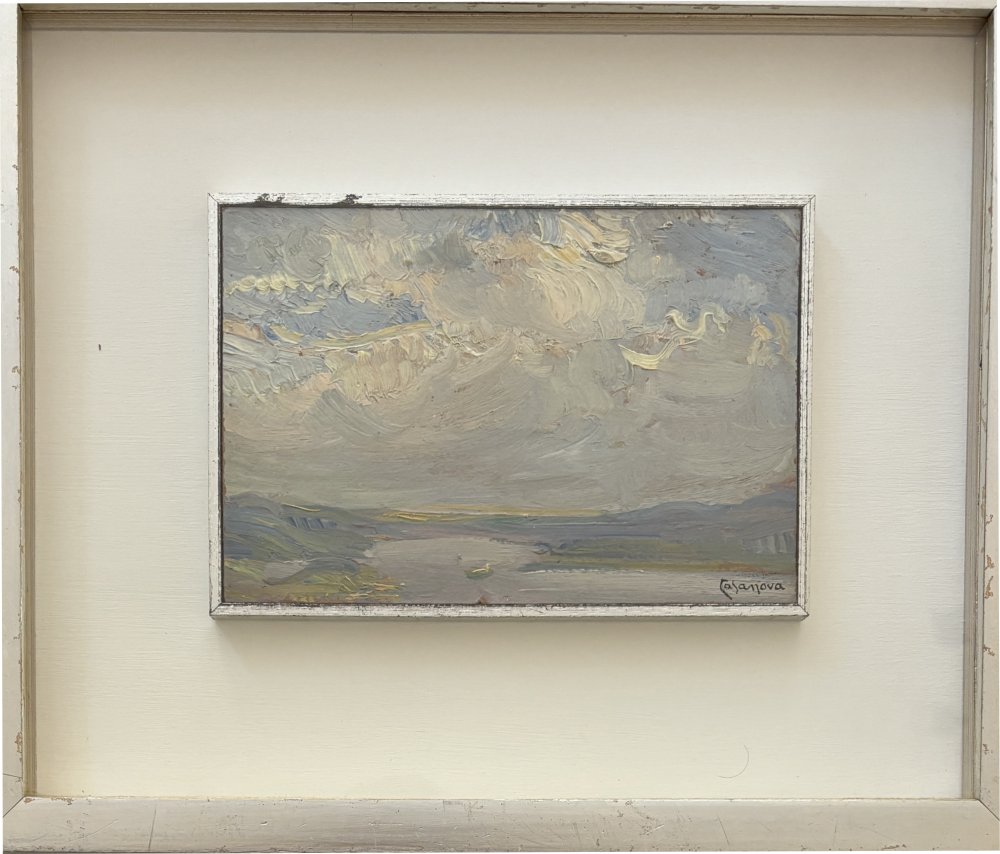 Carlo Casanova Crema (CR) 1871 - 1950 Quarna Sotto (VB), Chiarità (lago d'Orta), Olio su tavola cm 11x16 firmato in basso a dx