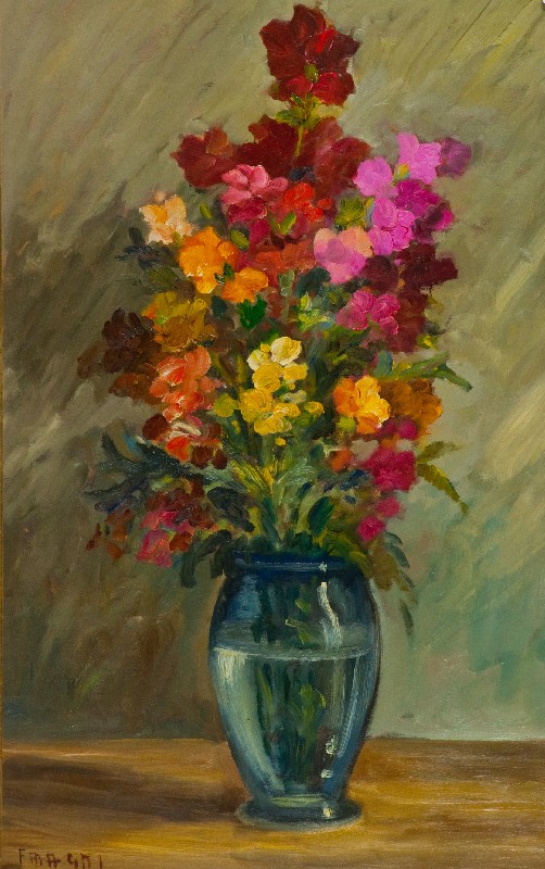 Fausto Magni (Firenze 1906 - 1985) VASO DI FIORI Olio su tavola, cm. 62x40 Firmato in basso a sinistra.