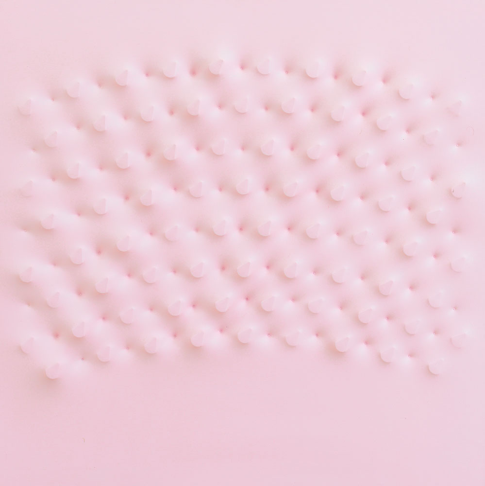 tela estroflessa rosa cm. 80x80, firma e titolo al retro, dichiarazione d'autenticità dell'artista su foto, opera priva di cornice.