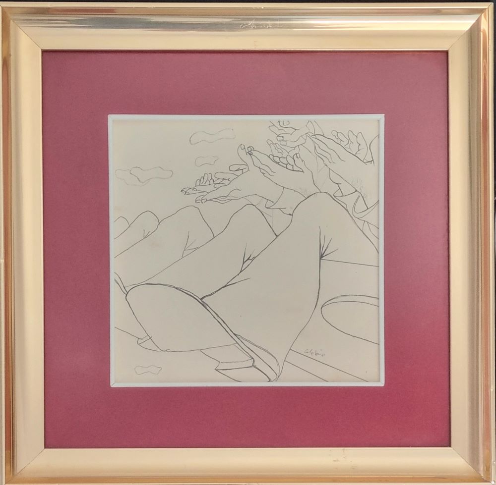 CALABRIA ENNIO Tripoli 1937 - Roma 2024 "Studio per una lito ispirata a Pablo Neruda" Disegno su carta cm 21x21 del 1980. Firmato sul fronte in basso a destra. Al retro firma per autentica del Maestro.
