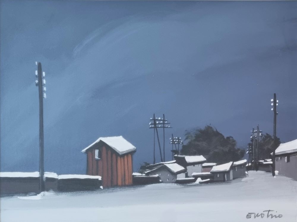 PUGLIESE ENOTRIO Buenos Aires 1920 - Pizzo 1989 "Ferrovia" Olio su tela cm 58x43. Firmato sul fronte in basso a destra. Al verso firma e timbro descrittivo a cura della Galleria d'Arte Diamani.