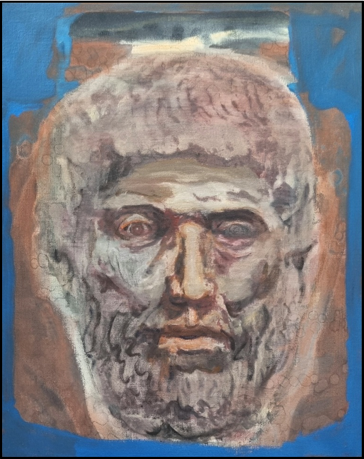 BARATELLA PAOLO Bologna 1935 "La metafisica di Aristotele" Tecnica mista su tela cm 80x100 del 2009. Sul retro titolo, firma e data.