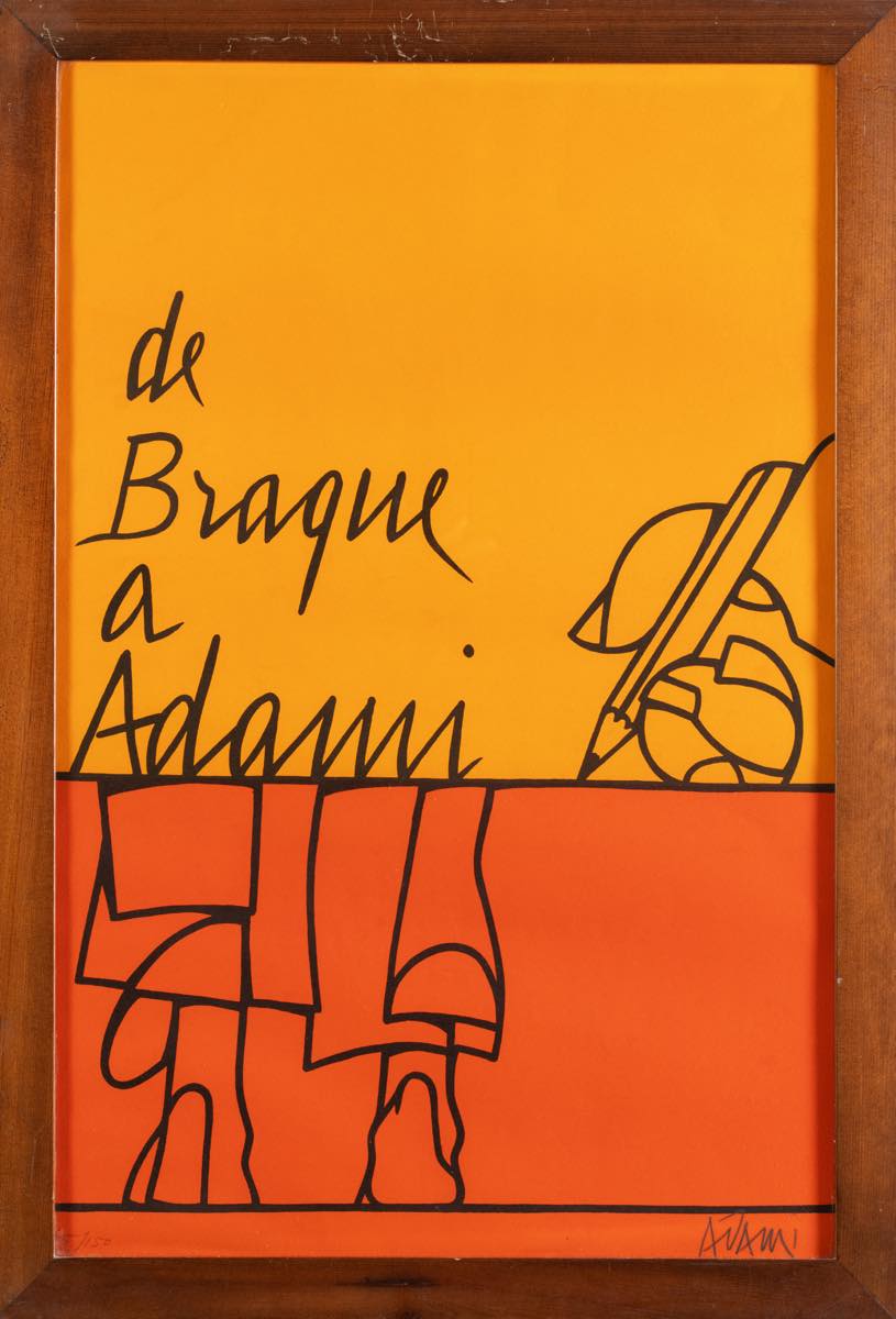 Valerio Adami (Bologna 1935), “De Braque a Adami”, 1973. - Litografia a colori su carta, firmata in basso a destra, numero di tiratura in basso a sinistra 55/150, H cm 70x46