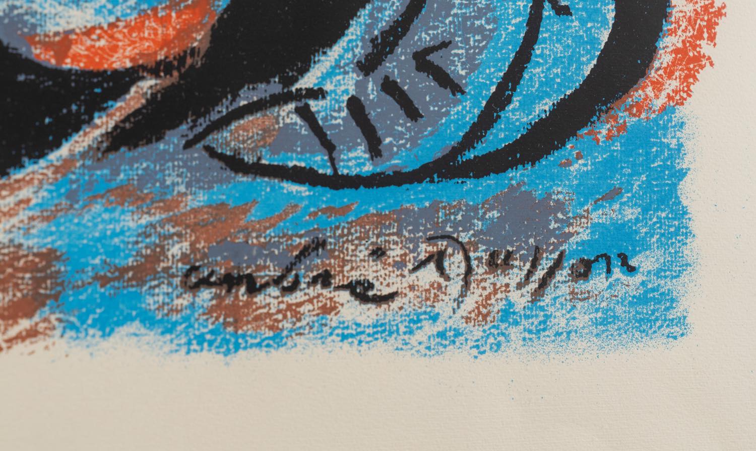 André Masson (Balagny-sur-Thérain 1896 - Parigi 1987), “Senza titolo”. - Litografia a colori su carta, firmata in basso a destra sulla lastra e a matita in basso a sinistra, presenta in basso a sinistra timbro a secco, H cm 70x50