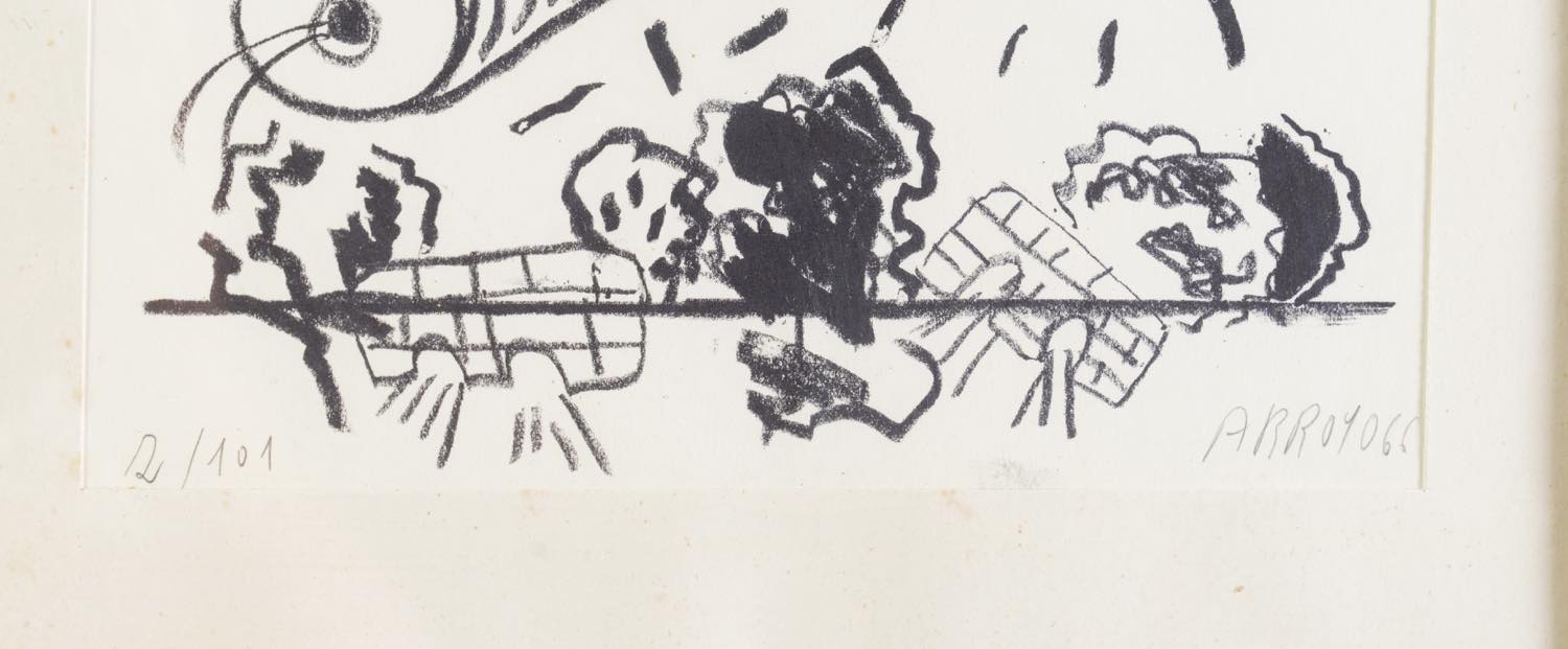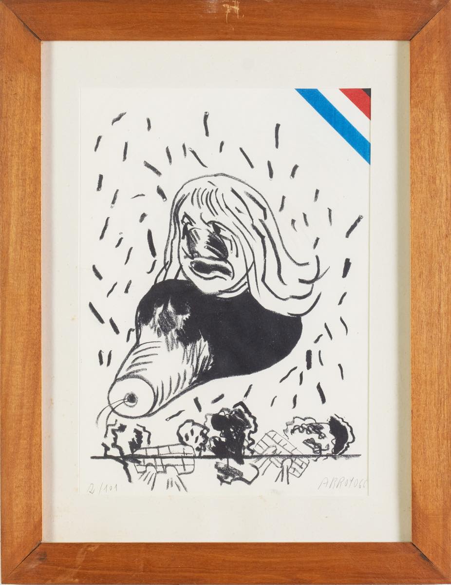 Eduardo Arroyo (Madrid 1937 – 2018), “Senza titolo”, 1966. - Litografia a colori su carta, firmata e datata in basso a destra, numero di tiratura in basso a sinistra 2/101, H cm 29x20