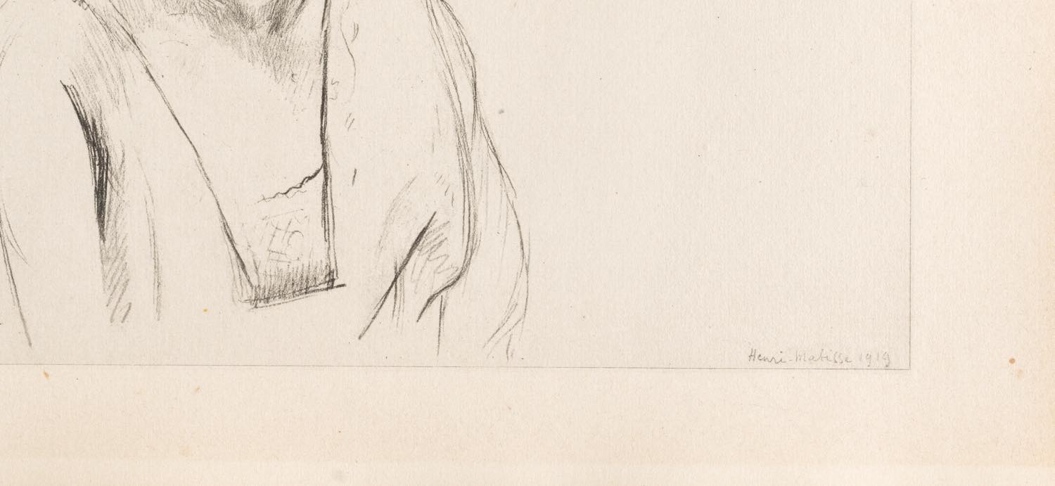 Henri Matisse (Le Cateau-Cambrésis 1869 – Nizza 1954), “Ritratto femminile”, Planche XII. - Fotolitografia su carta, firmata e datata 1919 in basso a destra sulla lastra, H cm 21x30.5