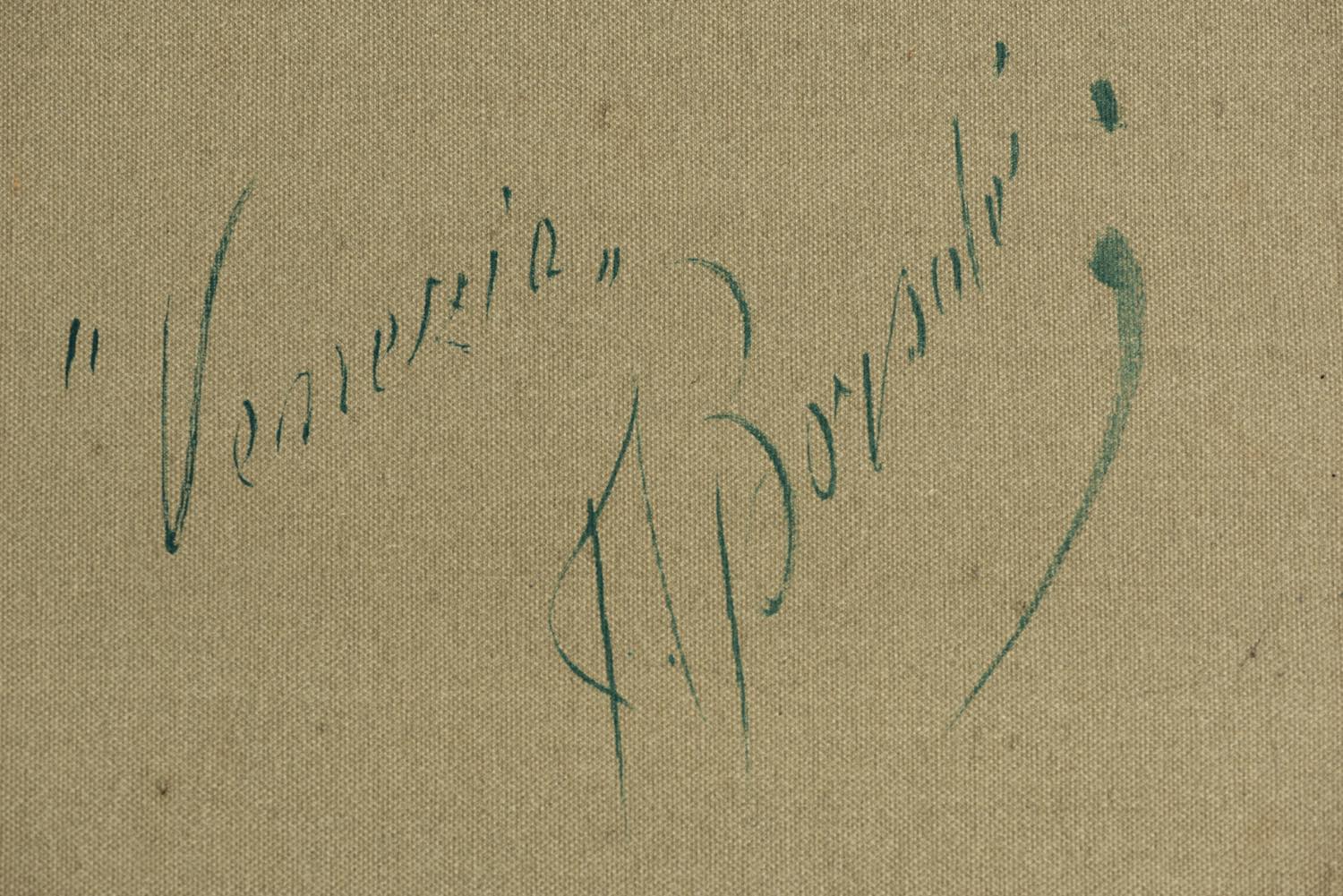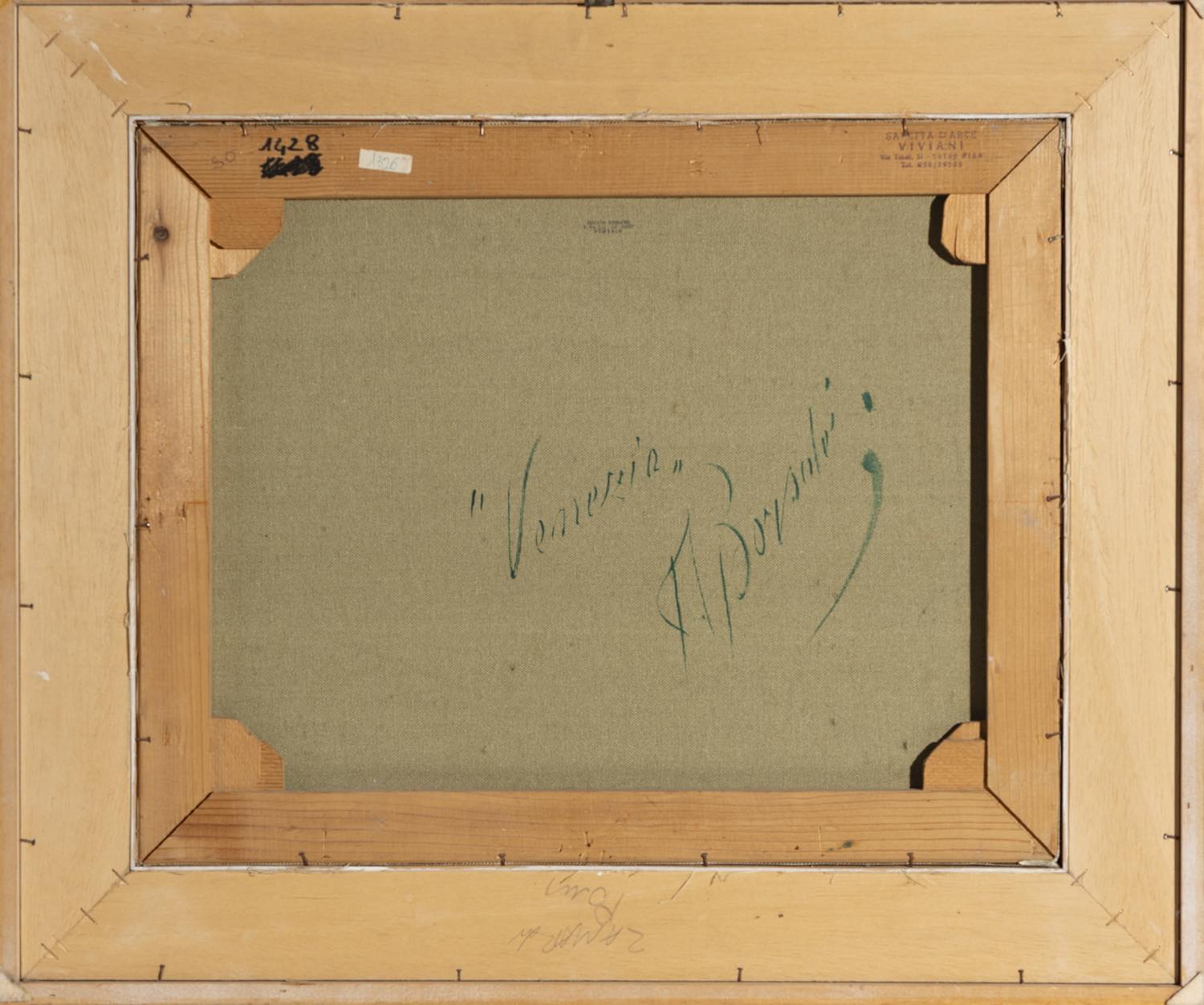 Renato Borsato (Venezia 1927), “Venezia”. - Olio su tela, reca al retro titolo, firma, timbro dell’artista, e timbro Saletta d’Arte Viviani – Pisa, H cm 40x50