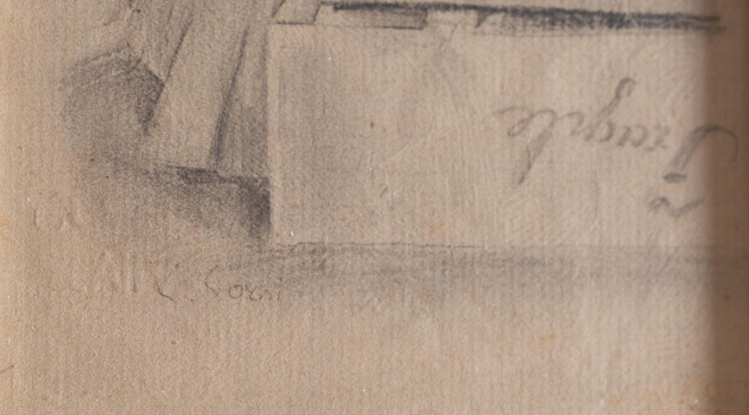 Carlo Corsi (Nizza 1879 - Bologna 1966), “Donna seduta di spalle”. - Carboncino su carta, firmato in basso a sinistra, H cm 21x13