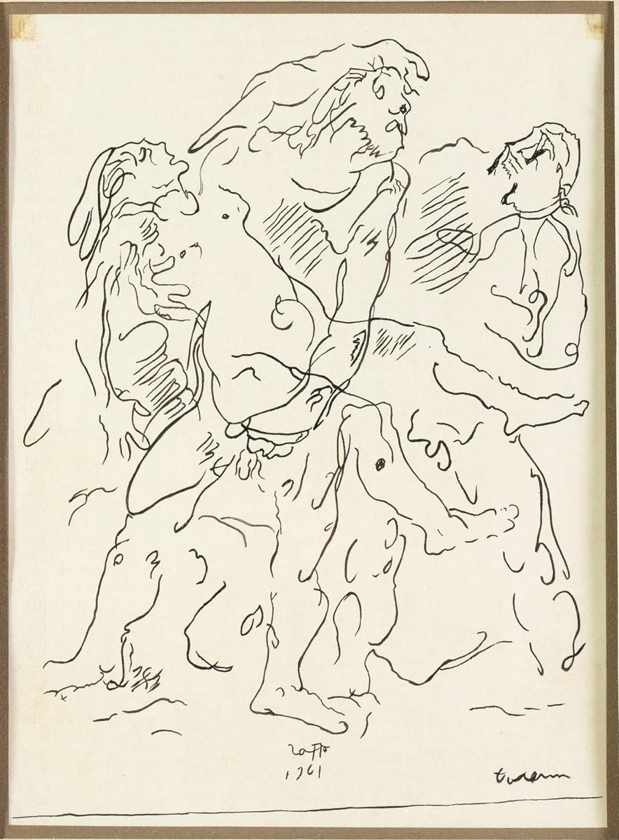 Felice Carena (Cumiana 1879 – Venezia 1966), “Saffo”, 1961. - China su carta, firmato in basso a destra, reca al retro timbro della Galleria Caldarese – Bologna, H cm 31.5x22.5
