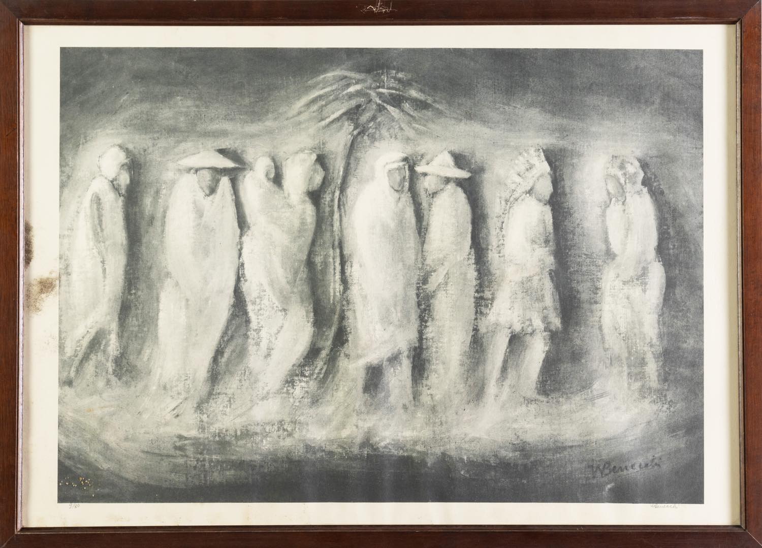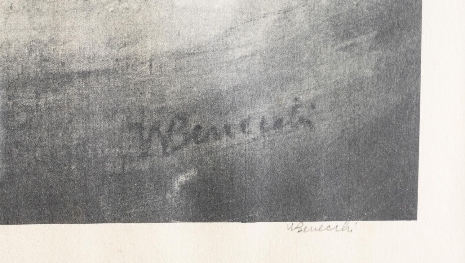 Walter Benecchi (Parma 1922 - 2002), “Figure”. - Litografia su carta, firmata in basso a destra sulla lastra e in basso a destra sul foglio, numero di tiratura in basso a sinistra 9/80, Lastra H cm 44x62.5