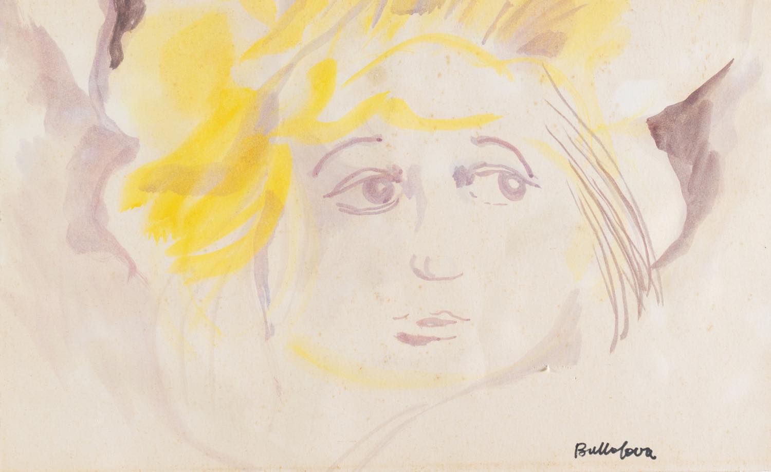 Sandro Buttafava (Verona 1923 - Bologna 1977), “Volto”. - Acquerello su carta, firmato in basso a destra, H cm 26x42 (lievi difetti)