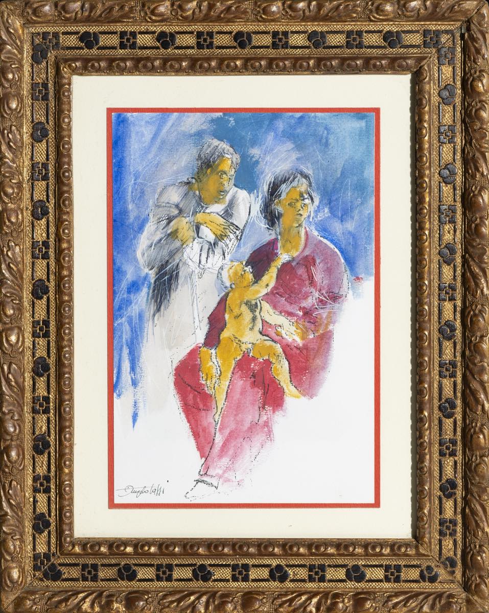 Angelo Tassi (Bologna 1937 – 2024), “Maternità”. - Acquerello su carta, firmato in basso a sinistra, H cm 25.5x17