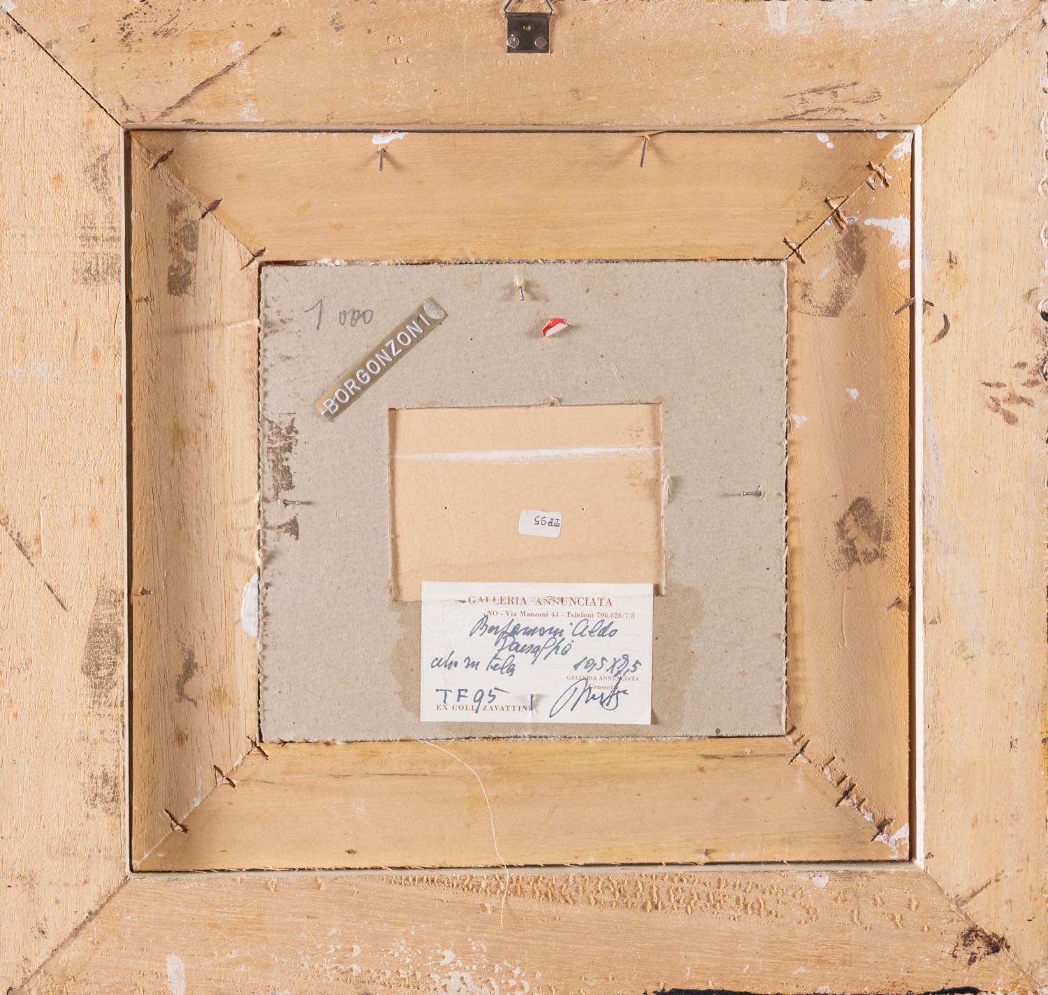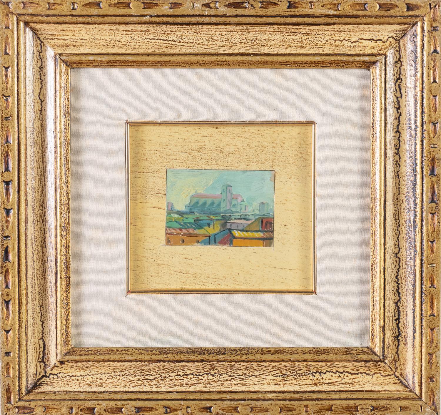 Aldo Borgonzoni (Medicina 1913 - Bologna 2004), “San Petronio”. - Olio su cartone, reca al retro etichetta della Galleria Annunciata - Grosseto, H cm 10.5x7.5