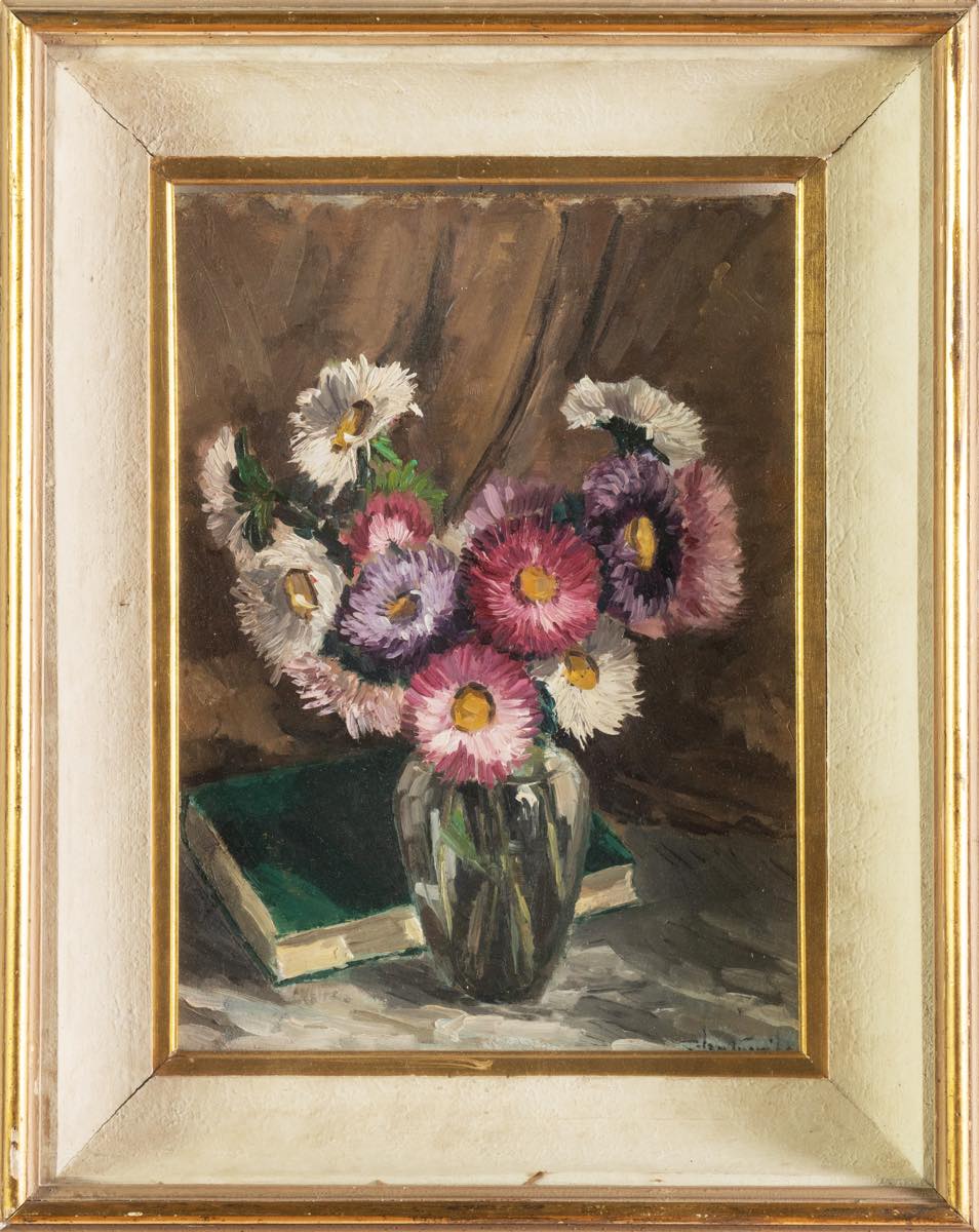 Luigi Colantuoni (1912 - 1994), “Vaso di fiori”, 1950. - Olio su masonite, firmato in basso a destra, reca al retro data, H cm 38x30