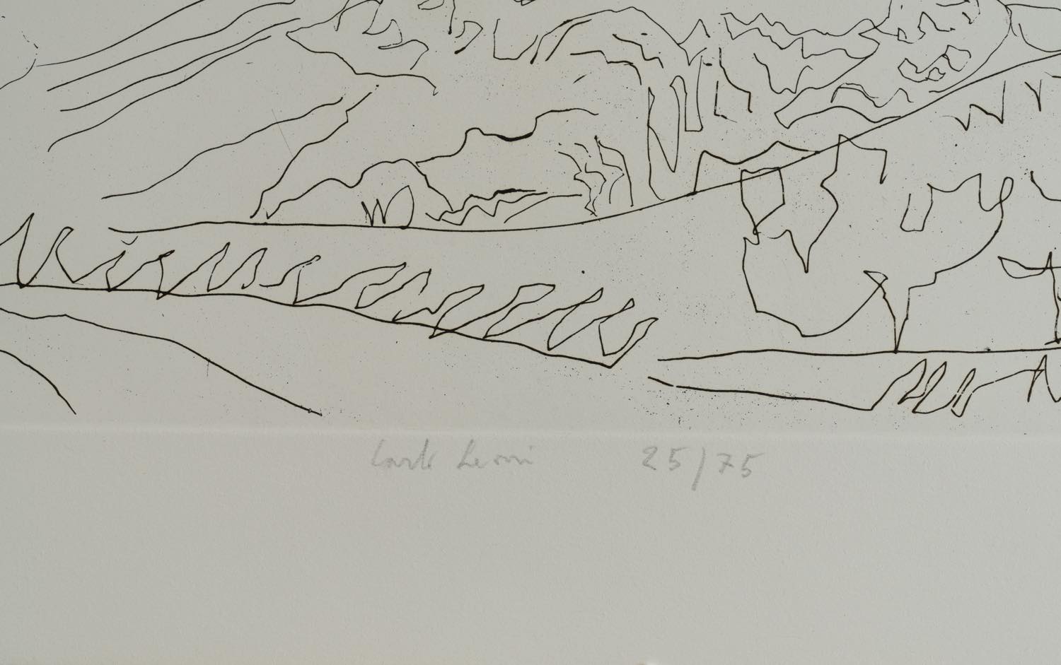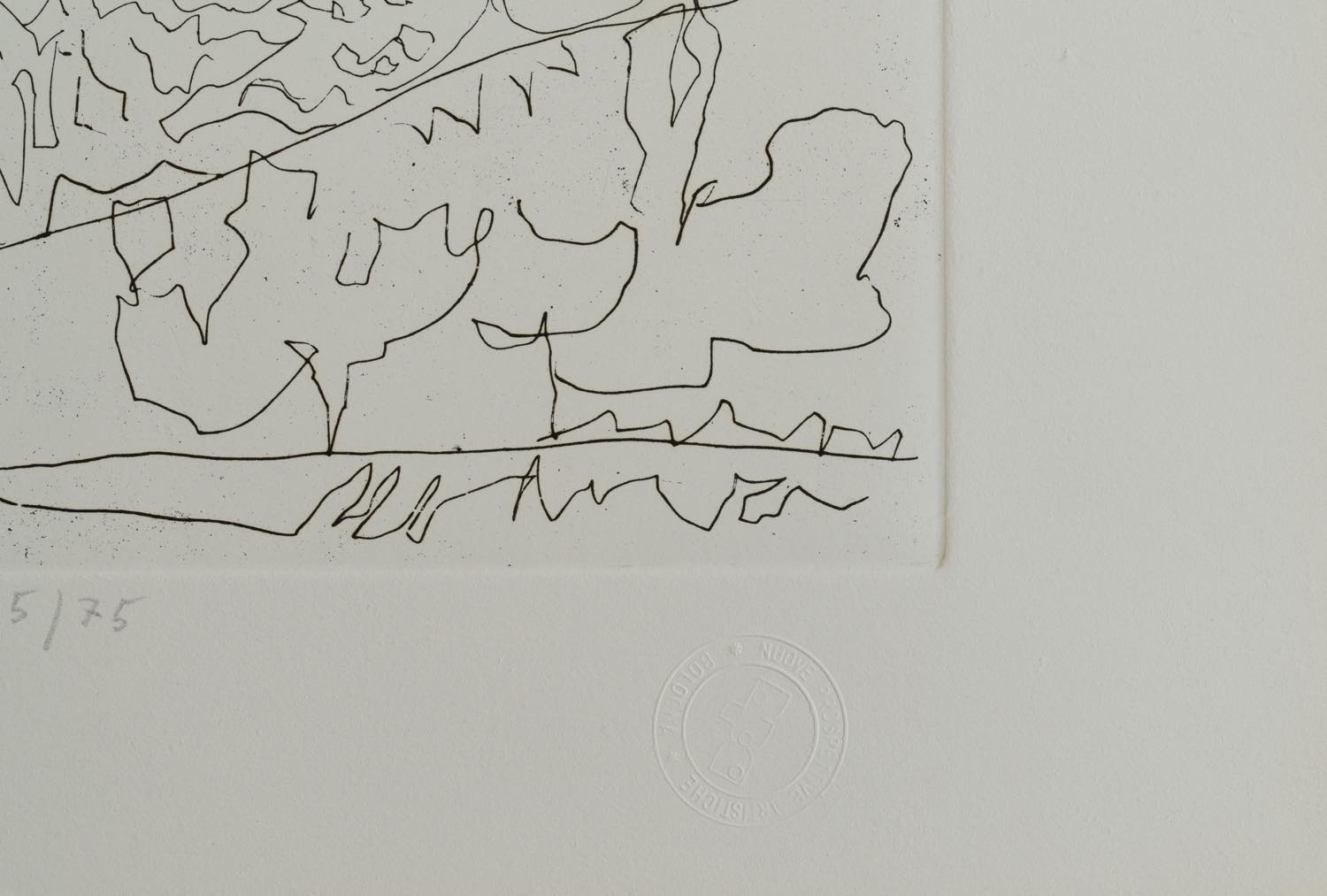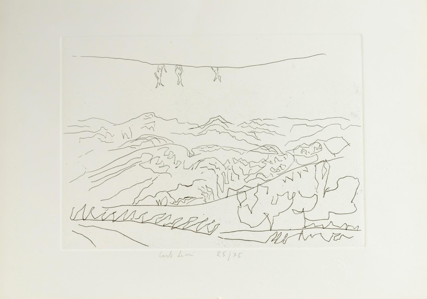 Carlo Leoni (Bologna 1925 - Vergato 1982), “Senza titolo”. - Acquaforte su carta, presenta firma e numero di tiratura in basso al centro 25/75, reca timbro a secco “Nuove Prospettive Artistiche Bologna”, Lastra H cm 34.5x24.5