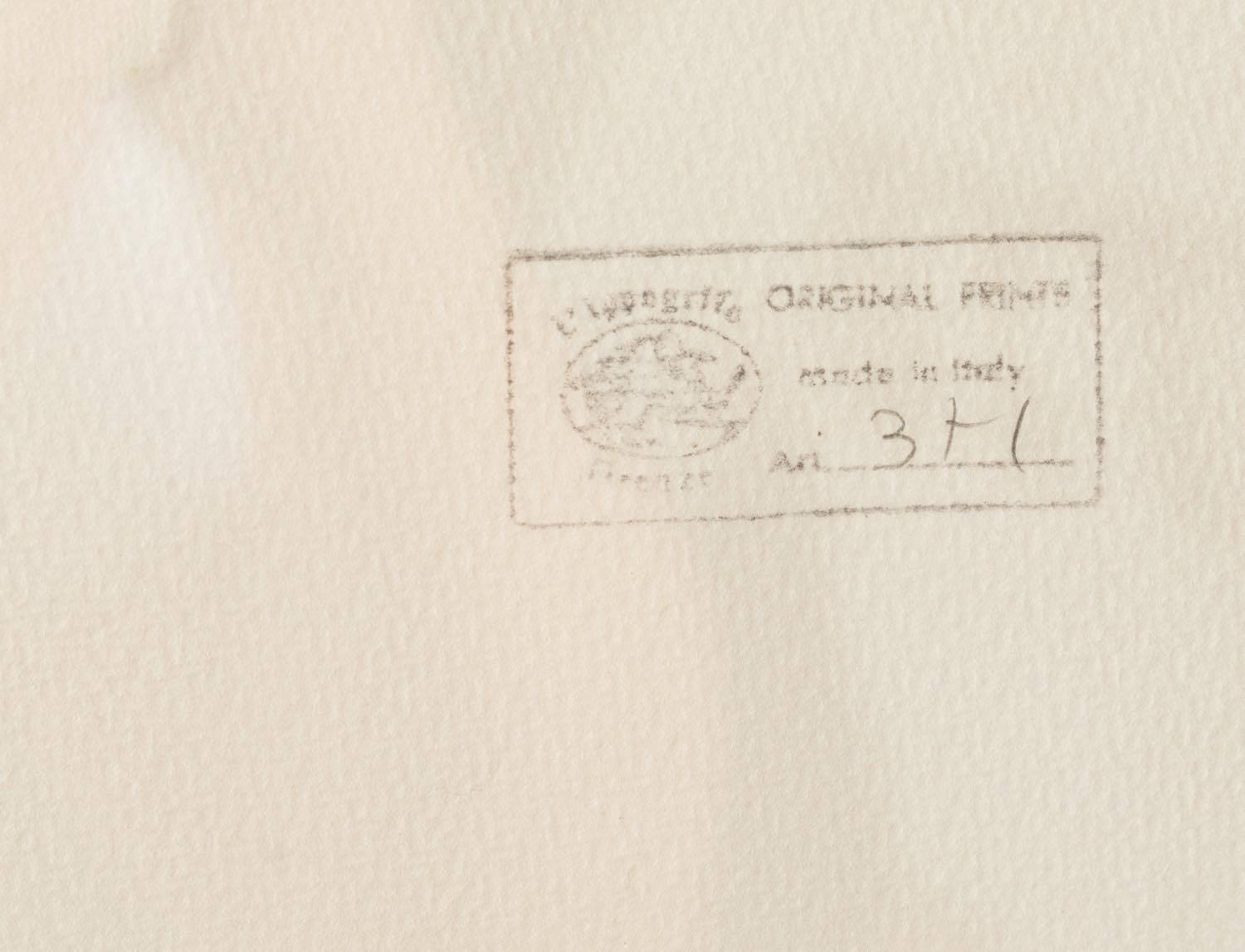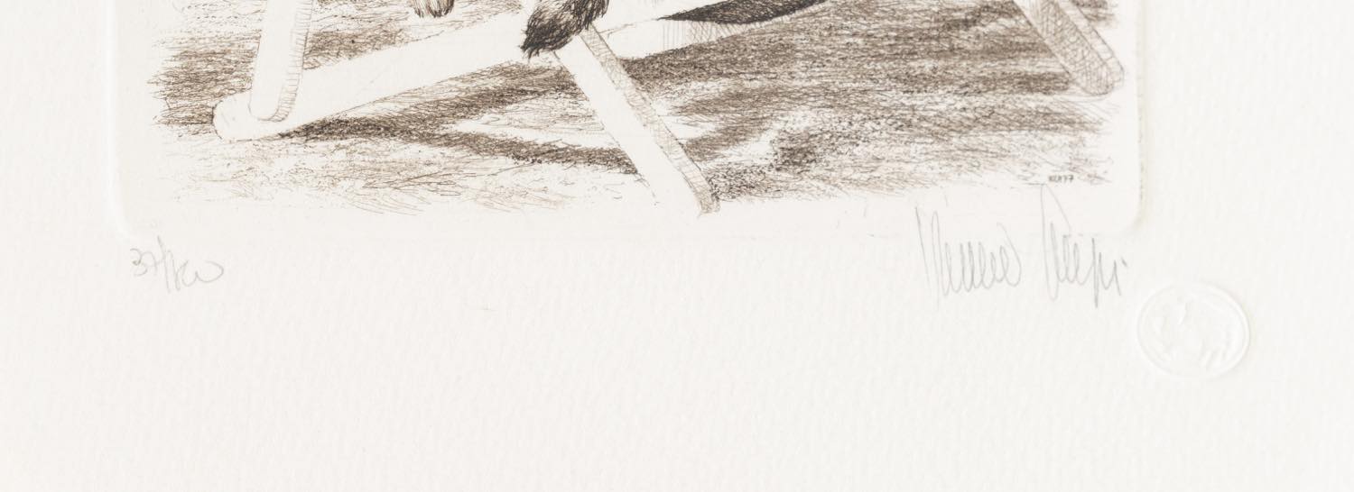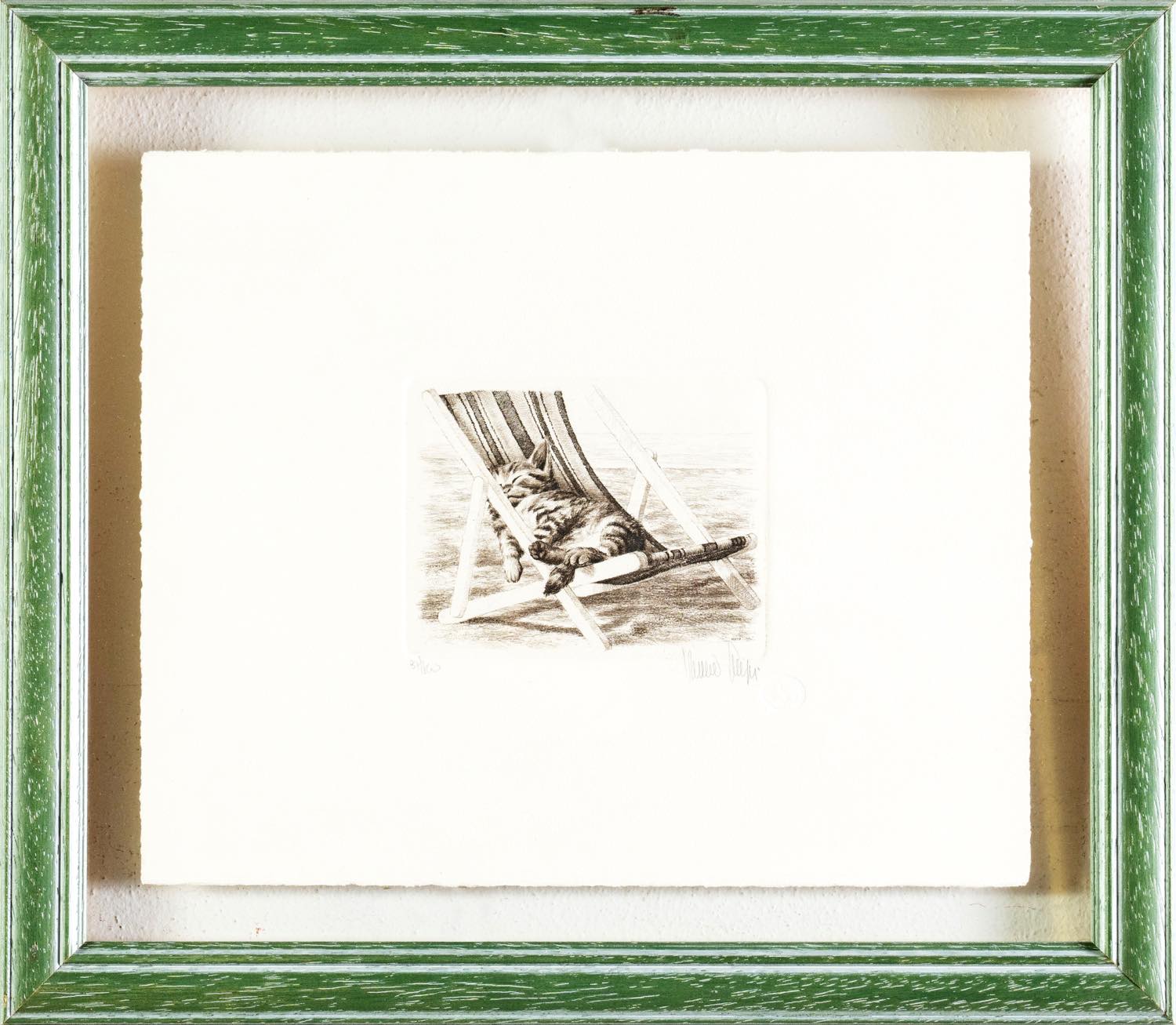 Vincenzo Volpi (Pontassieve 1954), “Gattino al mare”. - Incisione su carta, presenta in basso a destra firma e timbro a secco, in basso a sinistra numero di tiratura 37/100, reca al retro timbro L’Ippogrifo – Ferrara, Lastra H cm 9.5x12