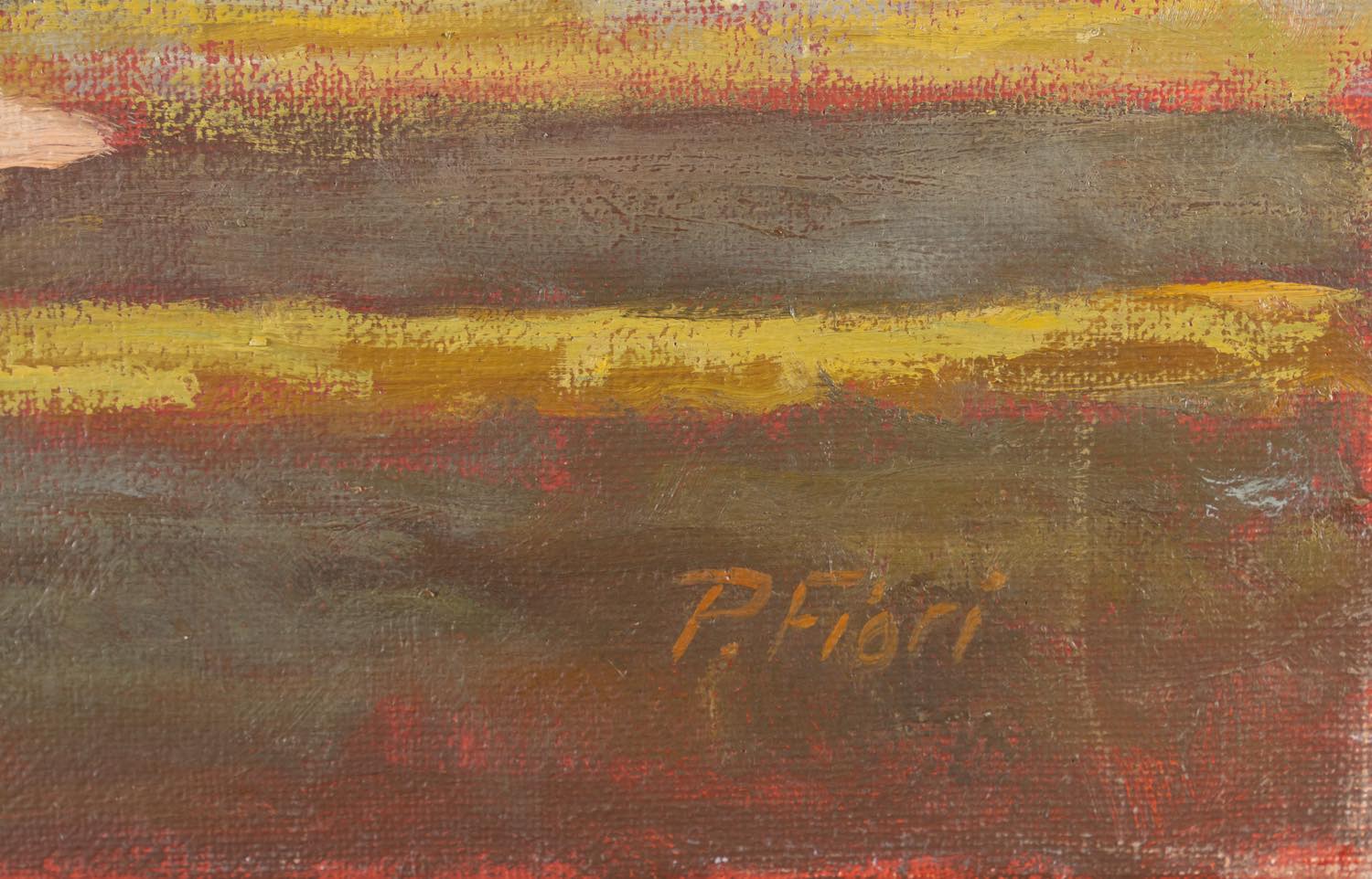 Piero Fiori (Bologna 1947), “Paesaggio con pini”. - Olio su tela, firmato in basso a destra, H cm 50x60