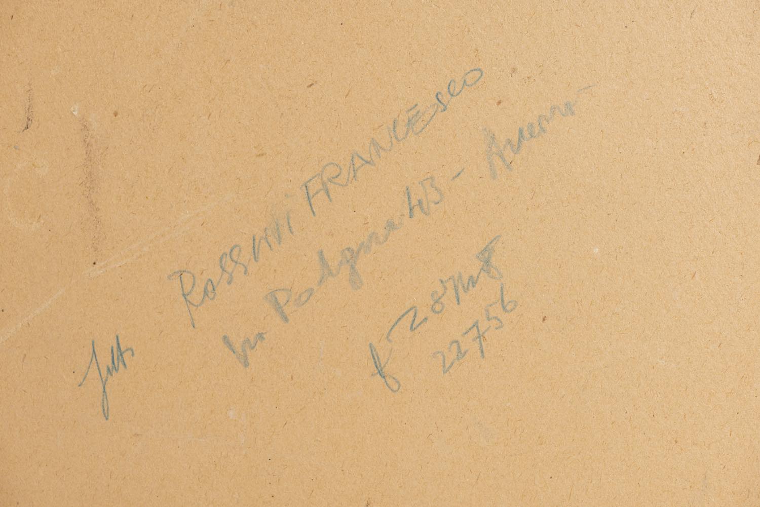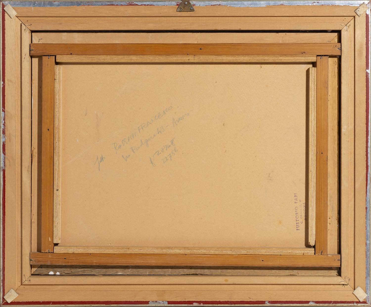 Francesco Rossini (Ancona 1904 - 1999), “Ancona”. - Olio su cartone, reca firma e titolo in basso al centro, presenta al retro firma dell’artista e timbro Fustorio Fabi – Ancona, H cm 28.5x38.5