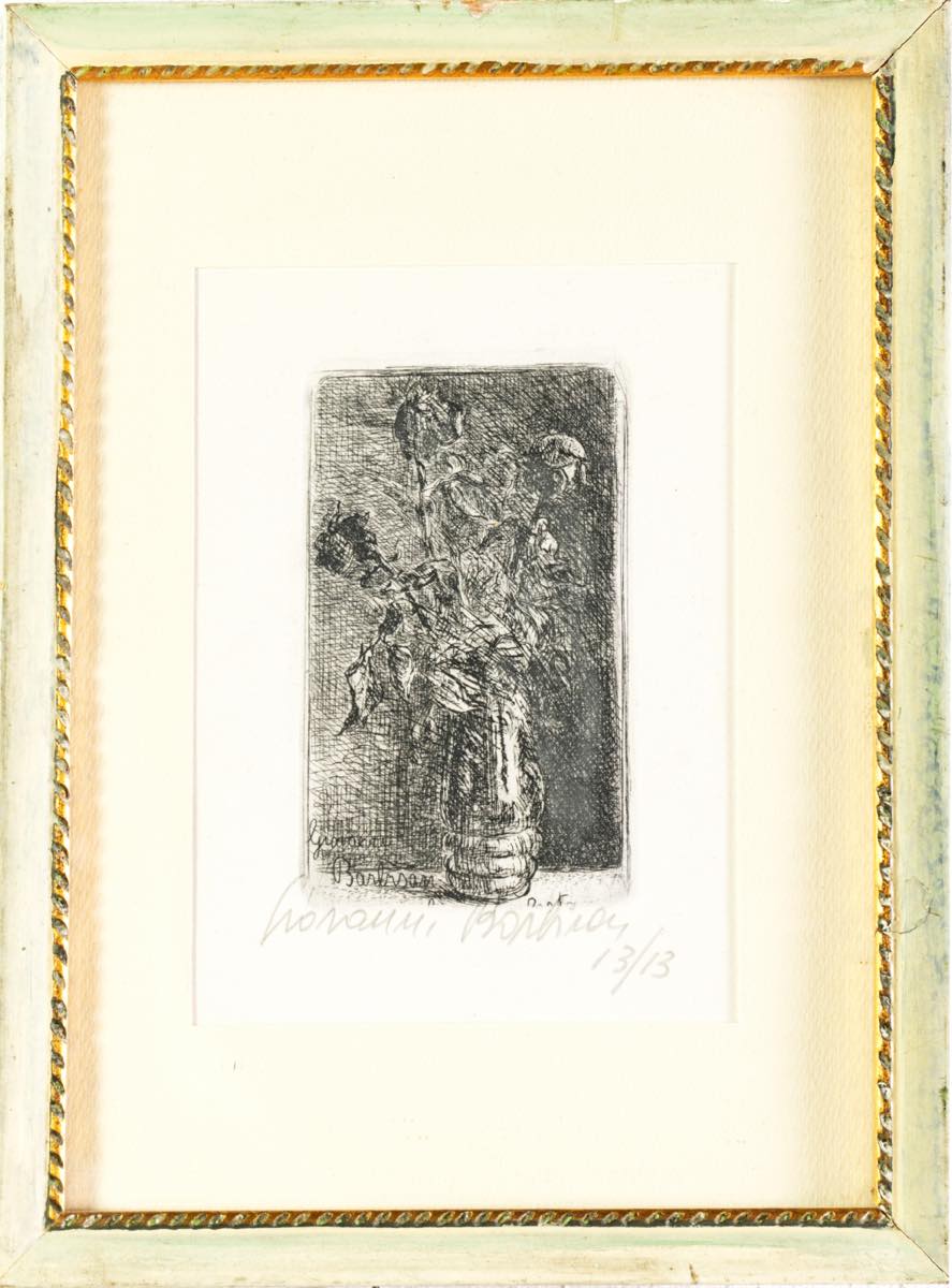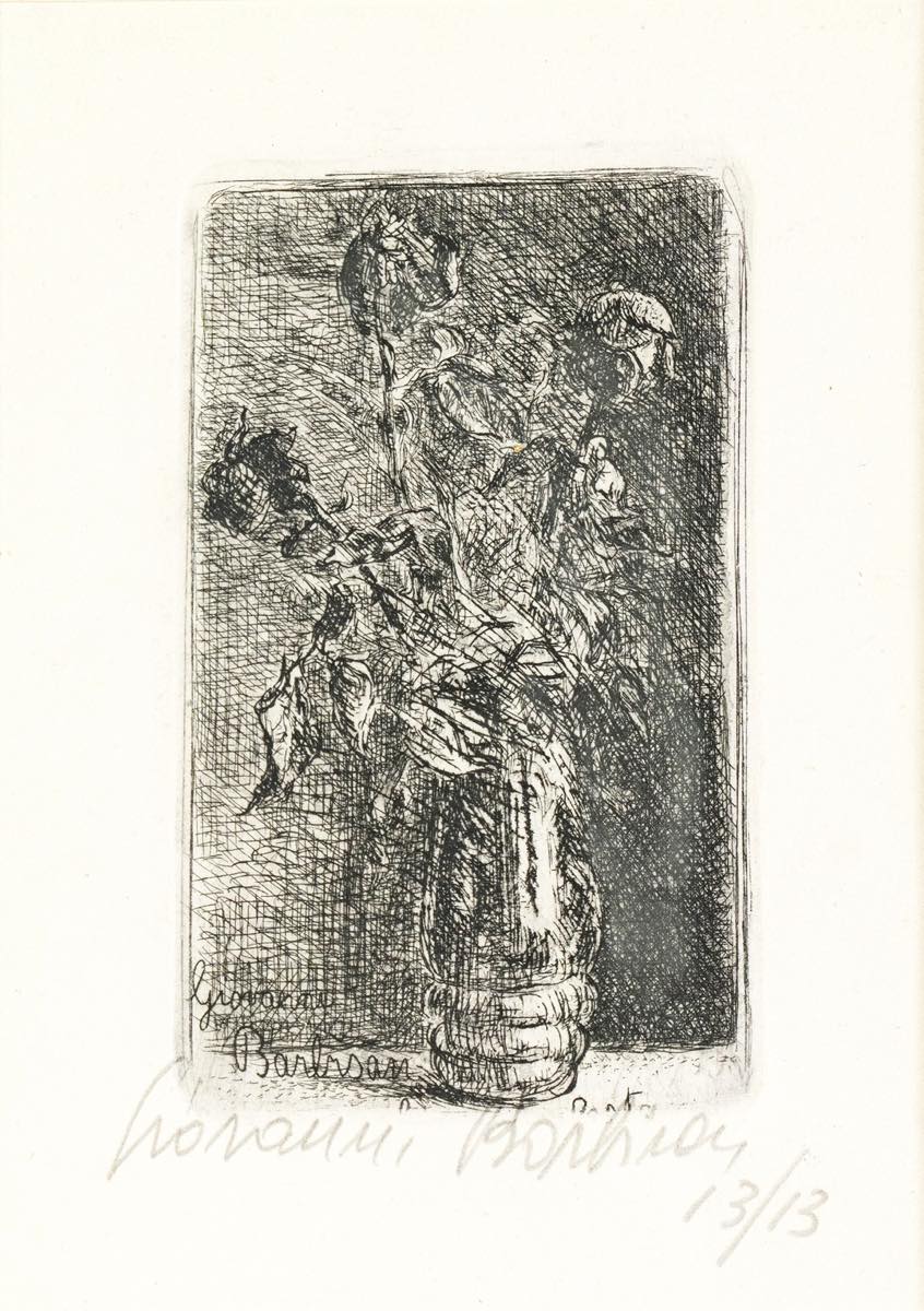 Giovanni Barbisan (Treviso 1914 - Orbetello 1988), “Vaso di fiori”. - Incisione su carta, firmato in basso a sinistra, numero di tiratura in basso a destra 13/13, H cm 10.5x6.5