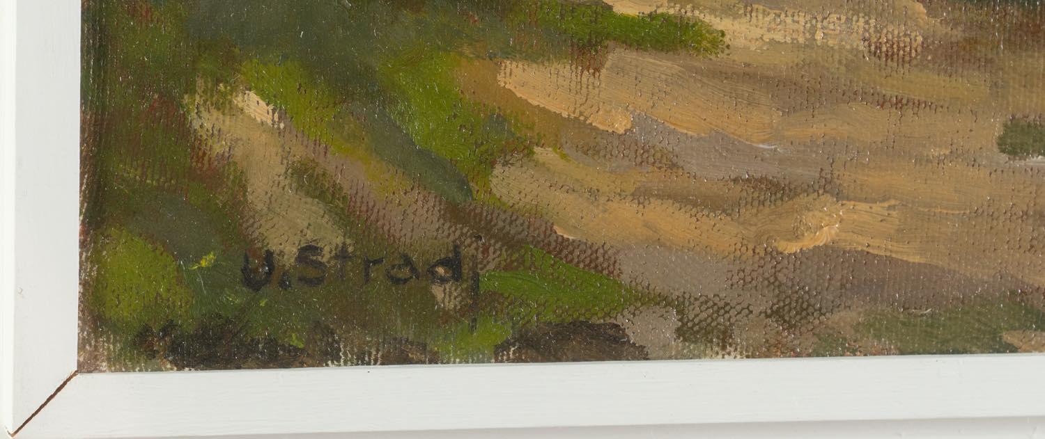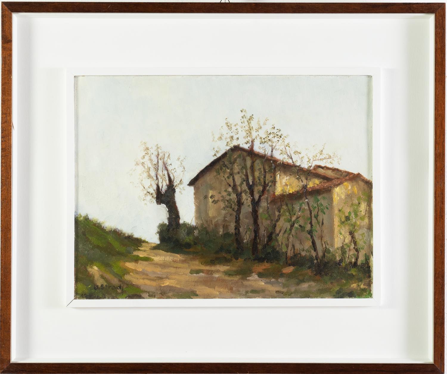 Umberto Stradi (XX secolo), “Dintorni di Bologna”. - Olio su tela firmato in basso a sinistra, reca al retro firma e titolo, H cm 30x40