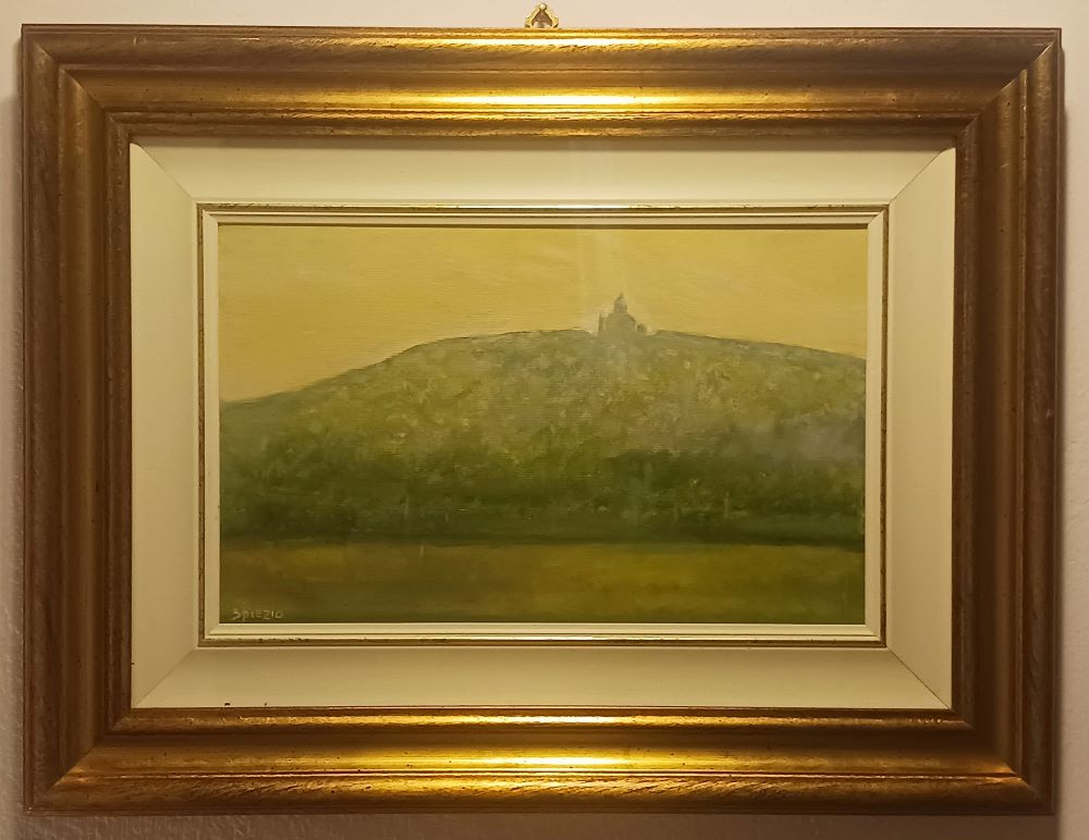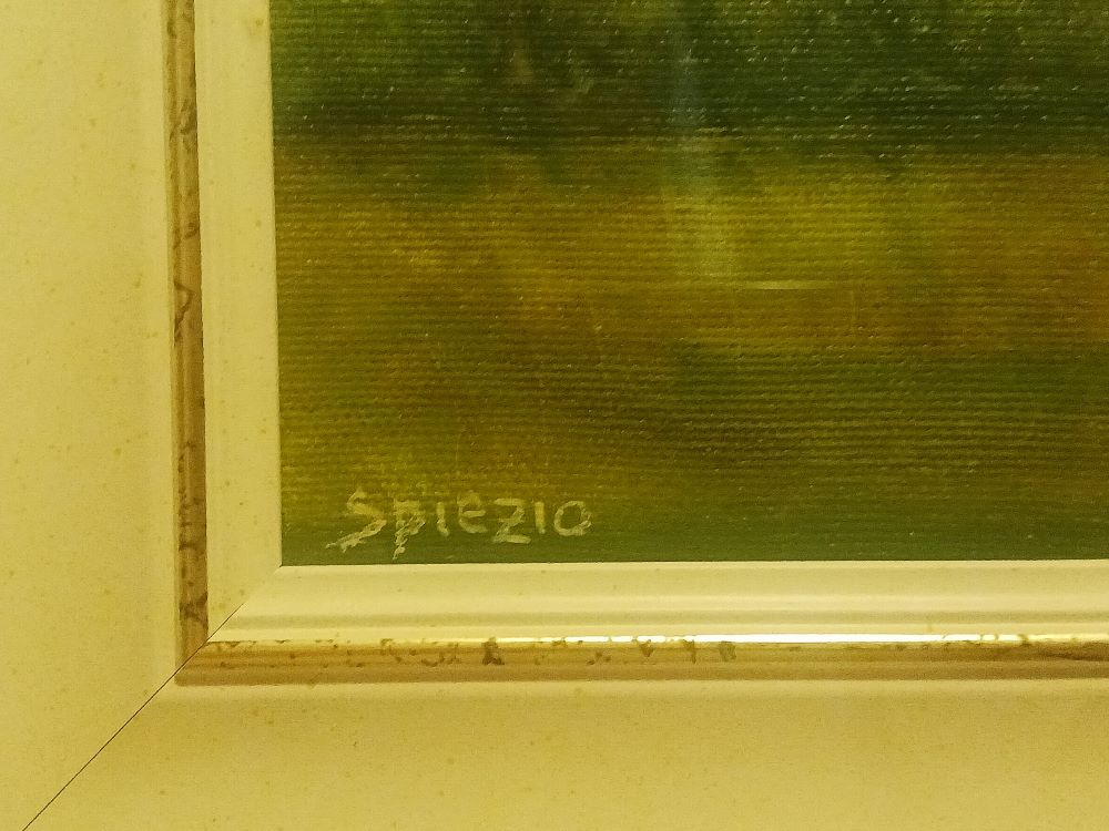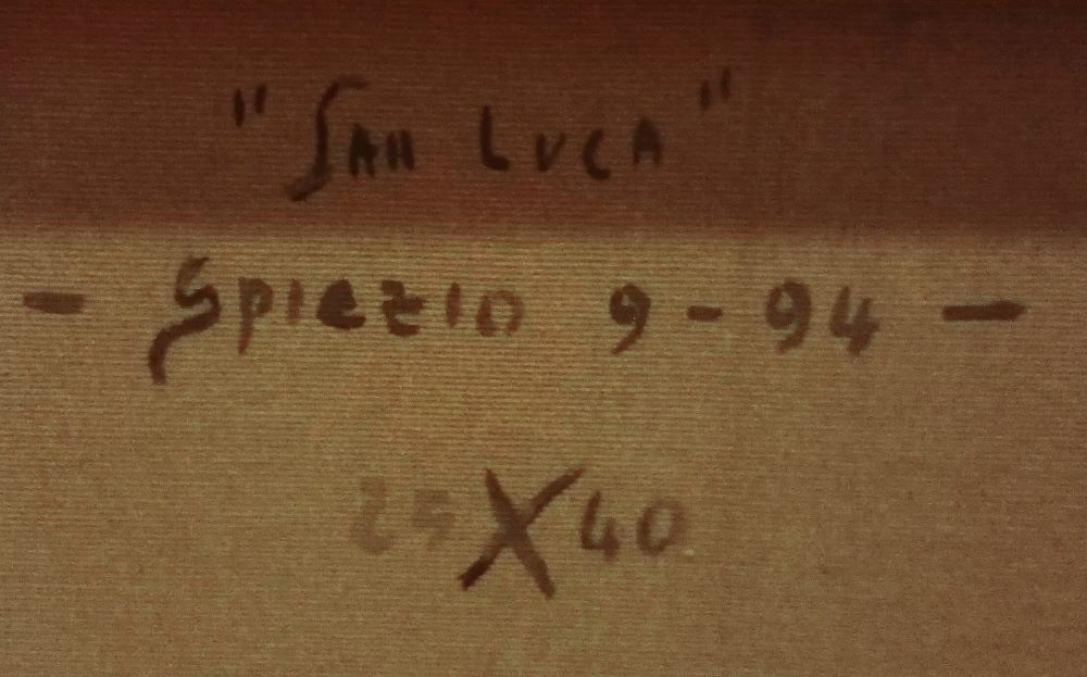 Olio su tela. Firmato in basso a sinistra. Firmato Al verso firmato, titolato e datato Spiezio / San Luca / 9 -94.