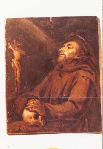 Giuseppe Maria Crespi (Bologna 1665-1747), San Francesco in estasi. Cm. 23x18,5.