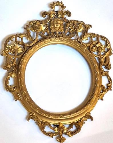 Cornice in legno intagliato e dorato, XVIII secolo.