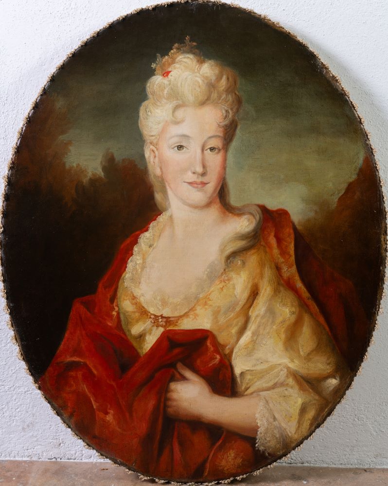 Ritratto della Contessa De Courcelles. Da Nicolas de Largilliere (Parigi 1656 - 1746), XX secolo. Cm. 82x65.