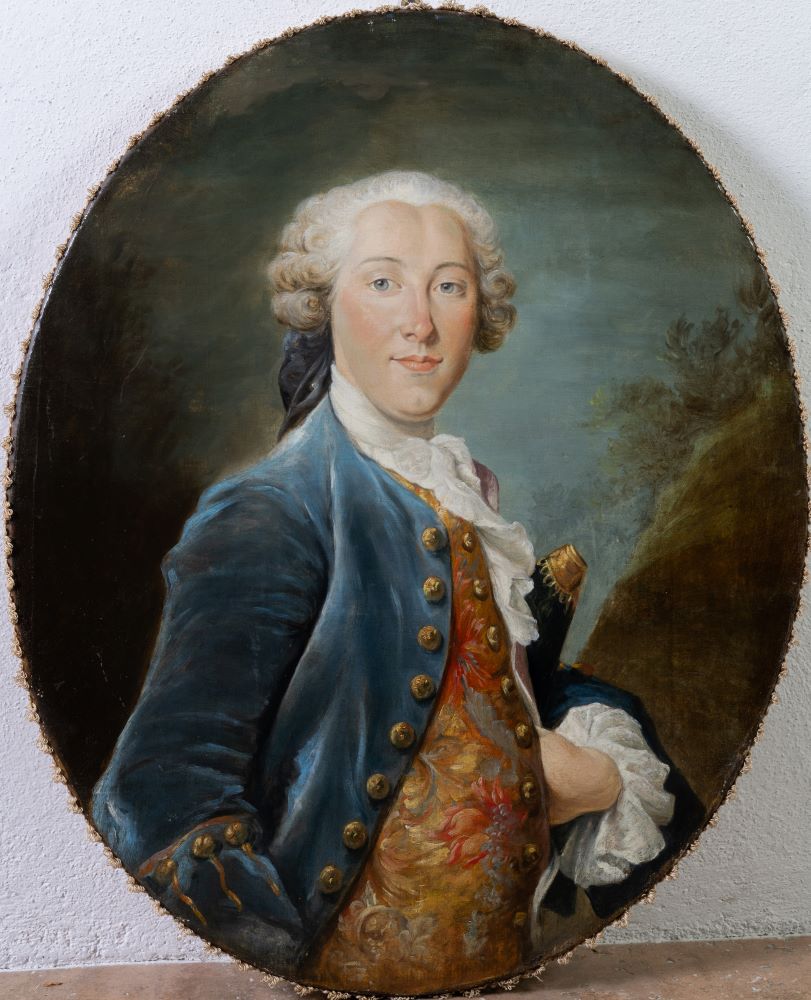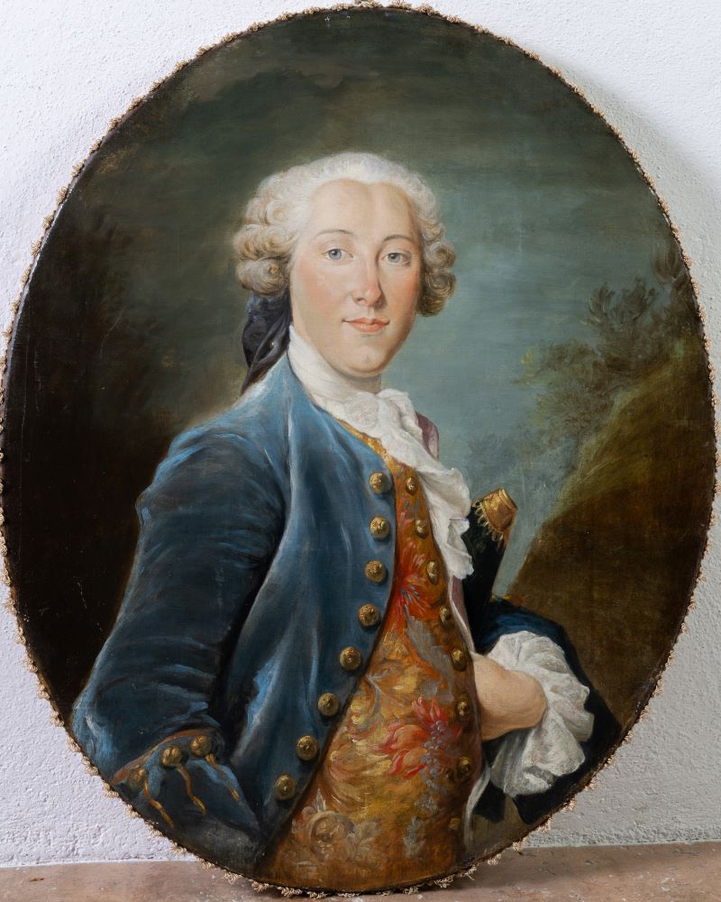 Ritratto di David Godefroy, marchese di Senneville. Da Louis Tocqué (Parigi 1696-1772), XX secolo. Cm. 82x65.