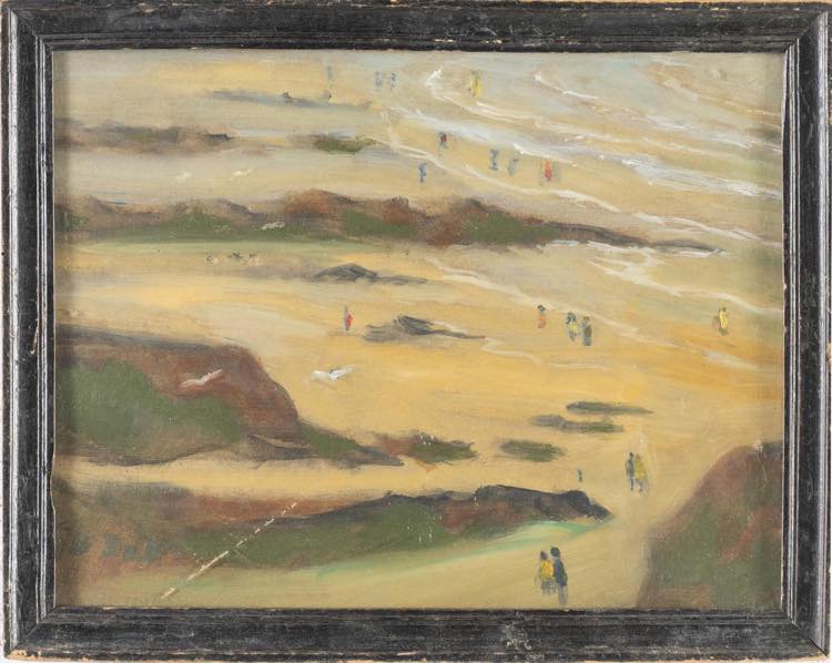 Pittore della prima metà del XX secolo. Spiaggia con personaggi.