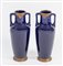Coppia di vasi in ceramica invetriata blu cobalto con applicazioni in bronzo.