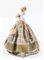 Goebel, attr. La Belle Chocolatiere, circa 1915. Mezza-Bambola in porcellana, modellata come una giovane ragazza con i capelli biondi, mentre regge un vassoio con cioccolatiera, tazza. Abiti in stoffa (difetti). Uso come copriteiera. Al retro sulla base 386. Cm. 40x30.