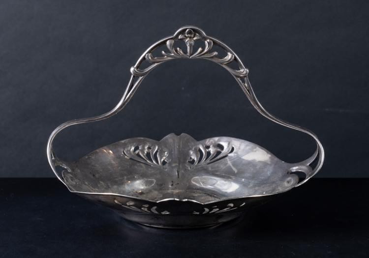 Centrotavola in metallo argentato, Orfèvrerie Gallia, 1900 circa. Cm. 23x30.