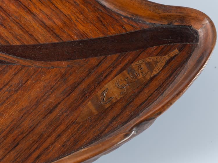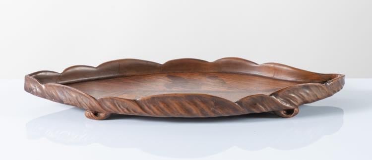 Émile Gallé (1846 - 1904), Francia. Vassoio in legno a forma di foglia.