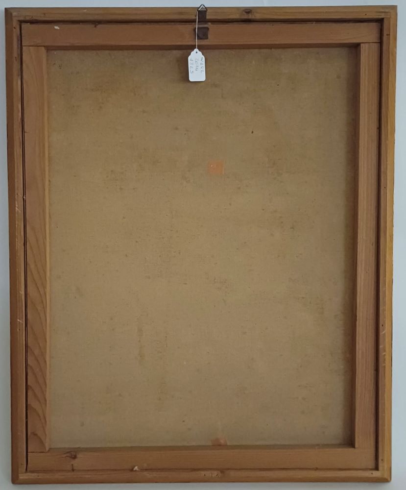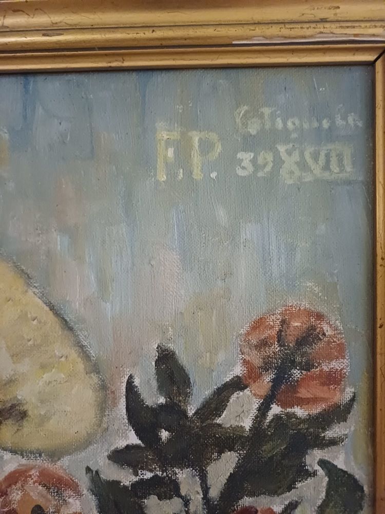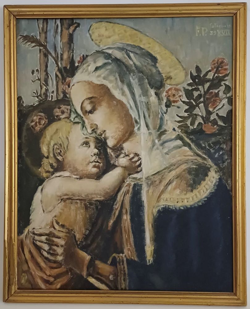 Olio su tela. In alto a destra iscrizioni Cotignola / F.P. / 39 8.VII. Da Botticelli, Madonna della Loggia, Uffizi Firenze. Cm. 71x56.5. In cornice cm. 78x62,5.
