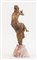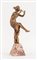 Scultura in antimonio patinato bronzo dorato, raffigurante ninfa mentre suona i flauti. Marchio della fonderia Fabrication Francaise, Made in France, Paris. Base in marmo.