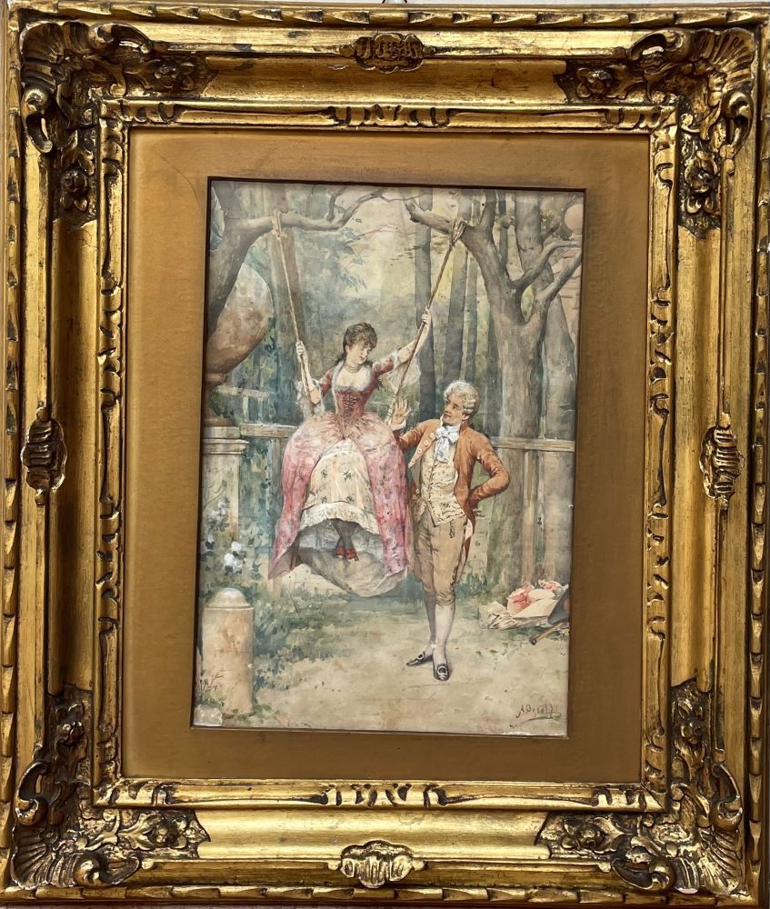 Arturo Orselli (attivo XIX secolo). Scena galante, 1880 circa.