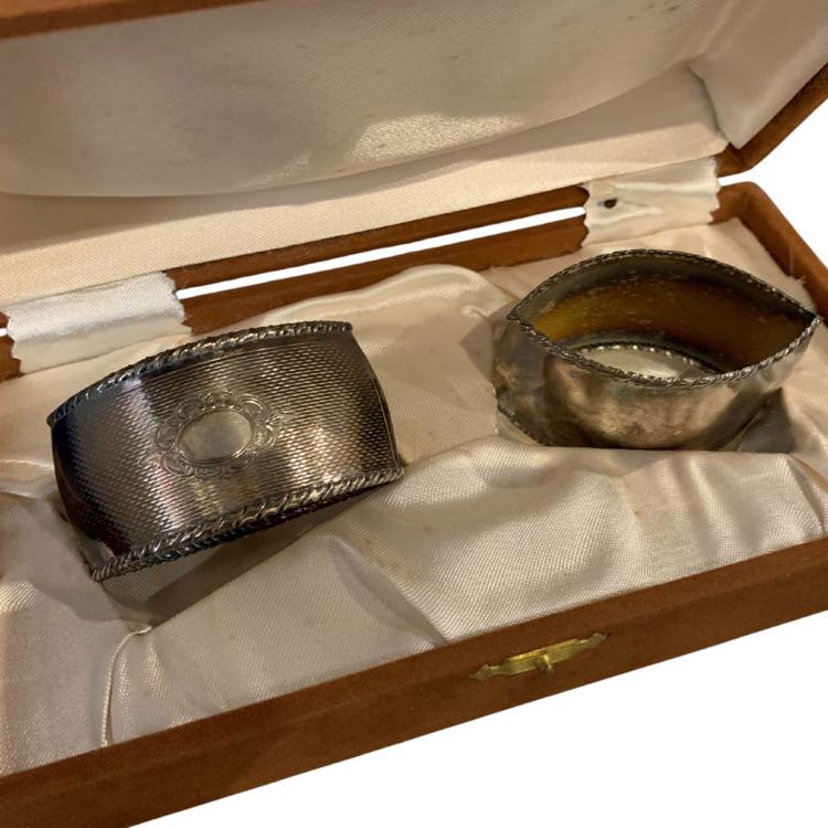 Coppia di portatovaglioli in argento, XX secolo.