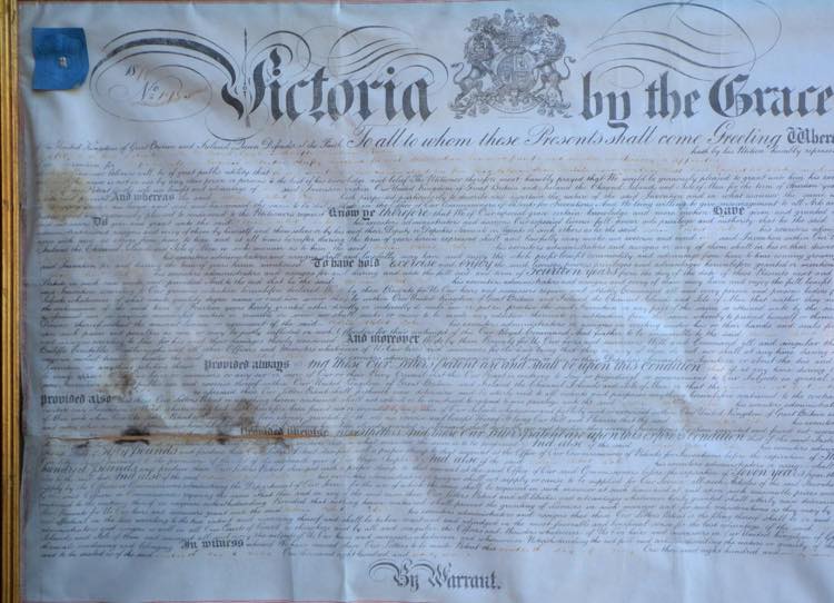 Nella parte sommitale 'Victoria by the Grace of God' a larghe lettere tra lo stemma reale. Bollo azzurro con argento.
