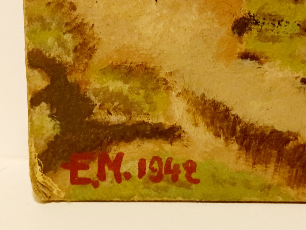 Pittrice della prima metà del XX secolo. Lotto composto di tre dipinti. Paesaggi, 1942.